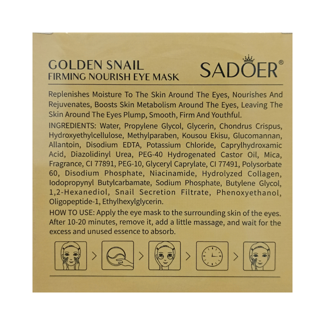 Патчі під очі від темних кіл Sadoer Golden Snail з муцином равлика 60 шт (SD98436)