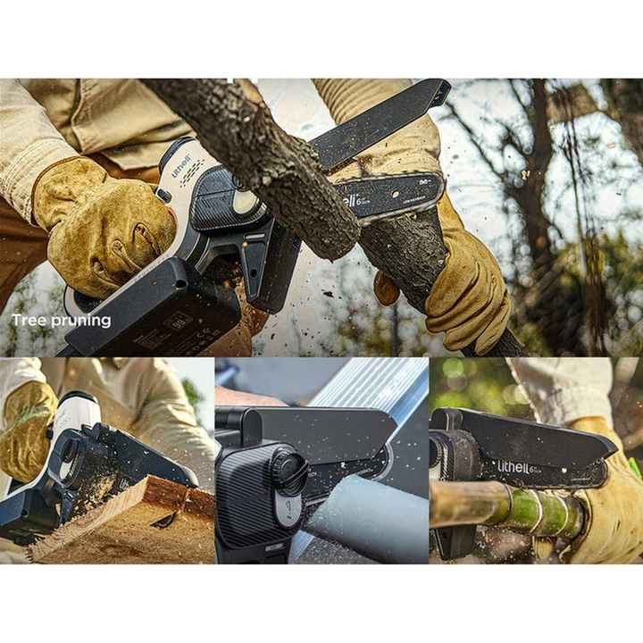 Litheli U20MC00— компактна безщіткова міні-пила, яка стане незамінним інструментом для садових робіт, догляду за територією приватного будинку та дрібних будівельних завдань. Вона легко справляється з обрізанням дерев, підрізанням кущів, розпилюванням дощок і навіть пластикових труб. Розпил колоди діаметром 16 см займає всього 8 секунд.