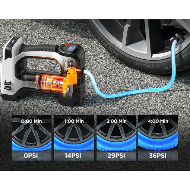 Воздушный компрессор Litheli — автоматическое устройство для закачки автомобильных шин, спортивного инвентаря и других предметов. Благодаря компактности и автономной работе, эта модель станет незаменимым помощником в поездках, природе, экстренных ситуациях и быту.