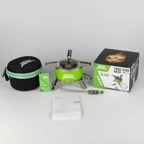 Модель пальникаBRS-73 має три конфорки, що працюють синхронно. Це створює масивний потік полум’я, що дозволяє нагріти 1 літр води менш ніж за 4 хвилини. Газу при цьому споживається зовсім небагато. Цей виріб також можна застосовувати як мініатюрний мангал. Для виготовлення пальника були використані такі матеріали як алюміній, мідь, сталь, захищена від іржі. Підпал тут зовнішній, а як паливо використовується скраплений газ. Передбачено також жорсткий чохол у наборі для зручного зберігання та перенесення.