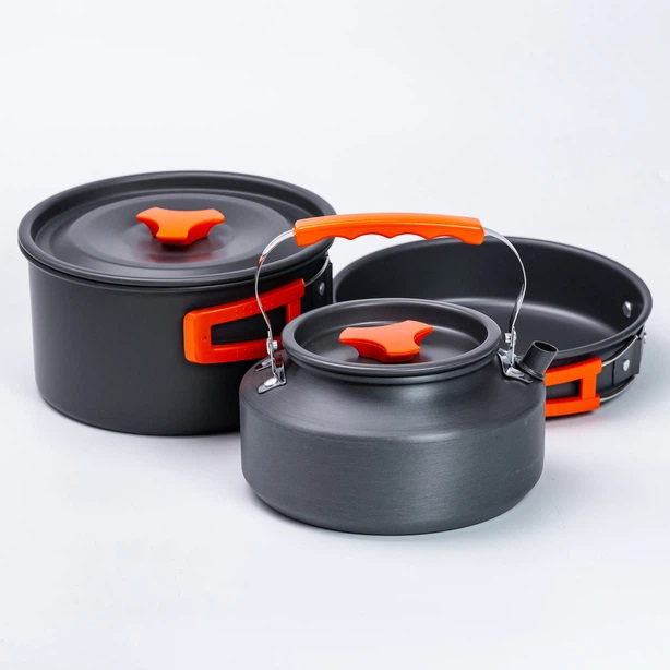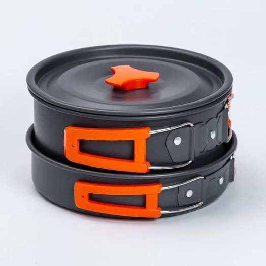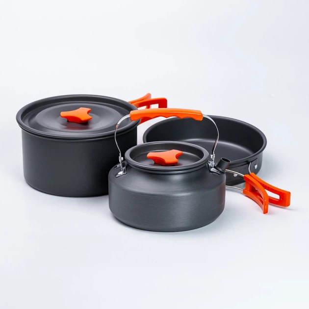 Набір посуду компактних розмірів, призначений для використання в туризмі. Процес приготування їжі на відкритому повітрі буде легким, швидким і приємним. Оптимально для використання невеликою компанією з двох-трьох осіб. До комплекту входять три ємності, ополоник, ложка, губка для миття посуду. Все це дуже зручно для експлуатації в польових умовах. Також передбачений чохол для зберігання й перенесення виробів.