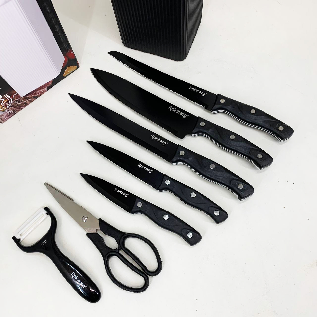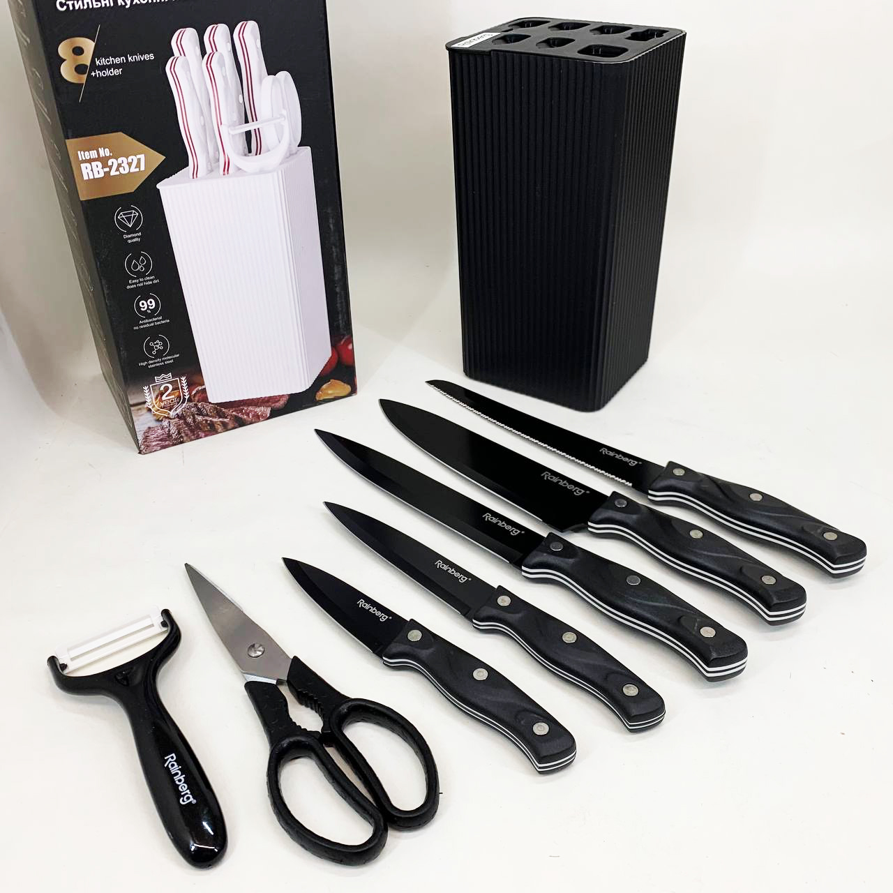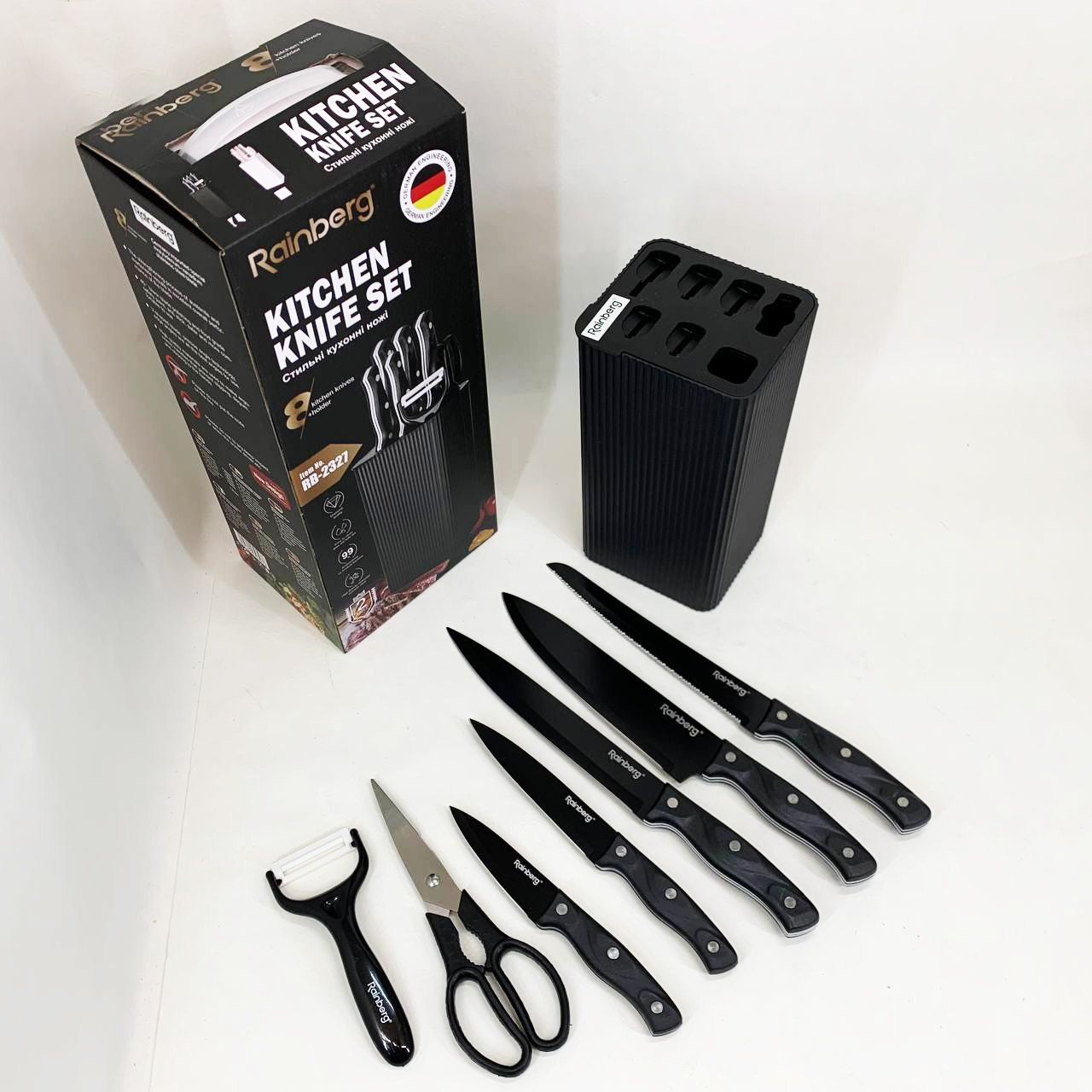 Набір ножів із нержавіючої сталі з основою Rainberg RB-2327 Black