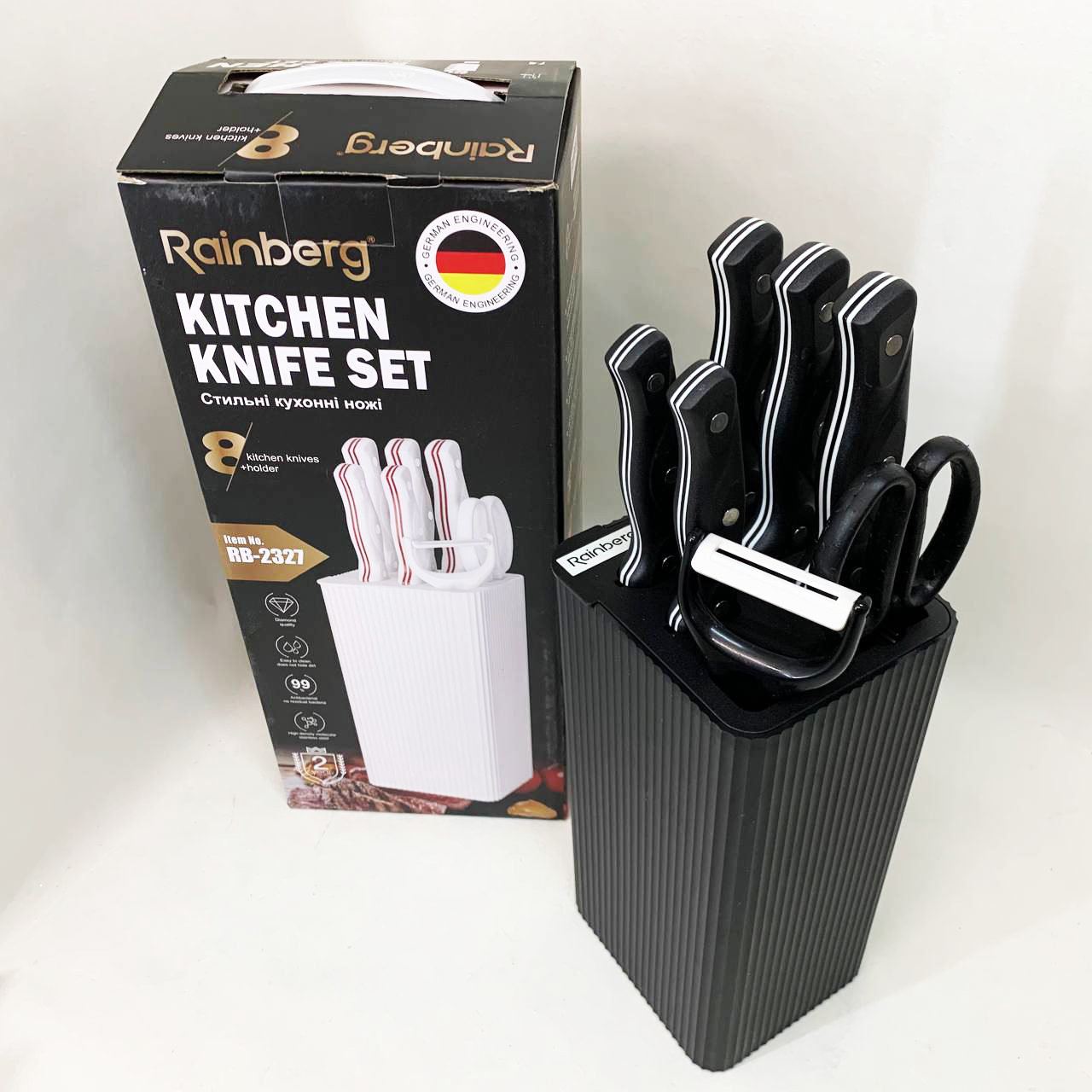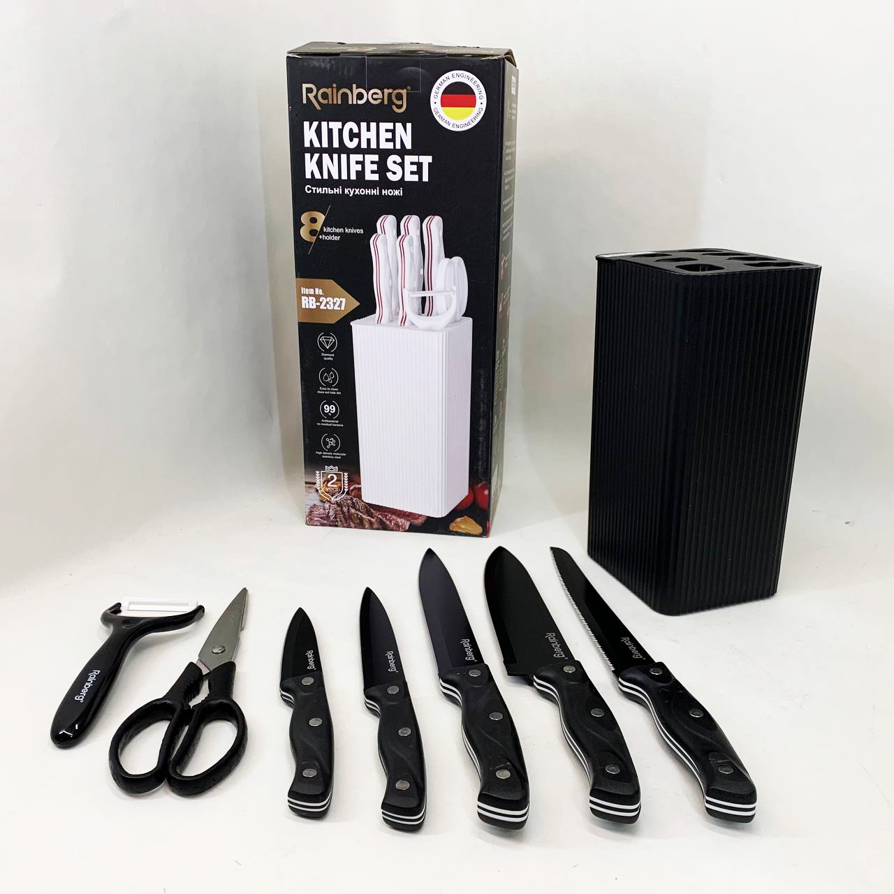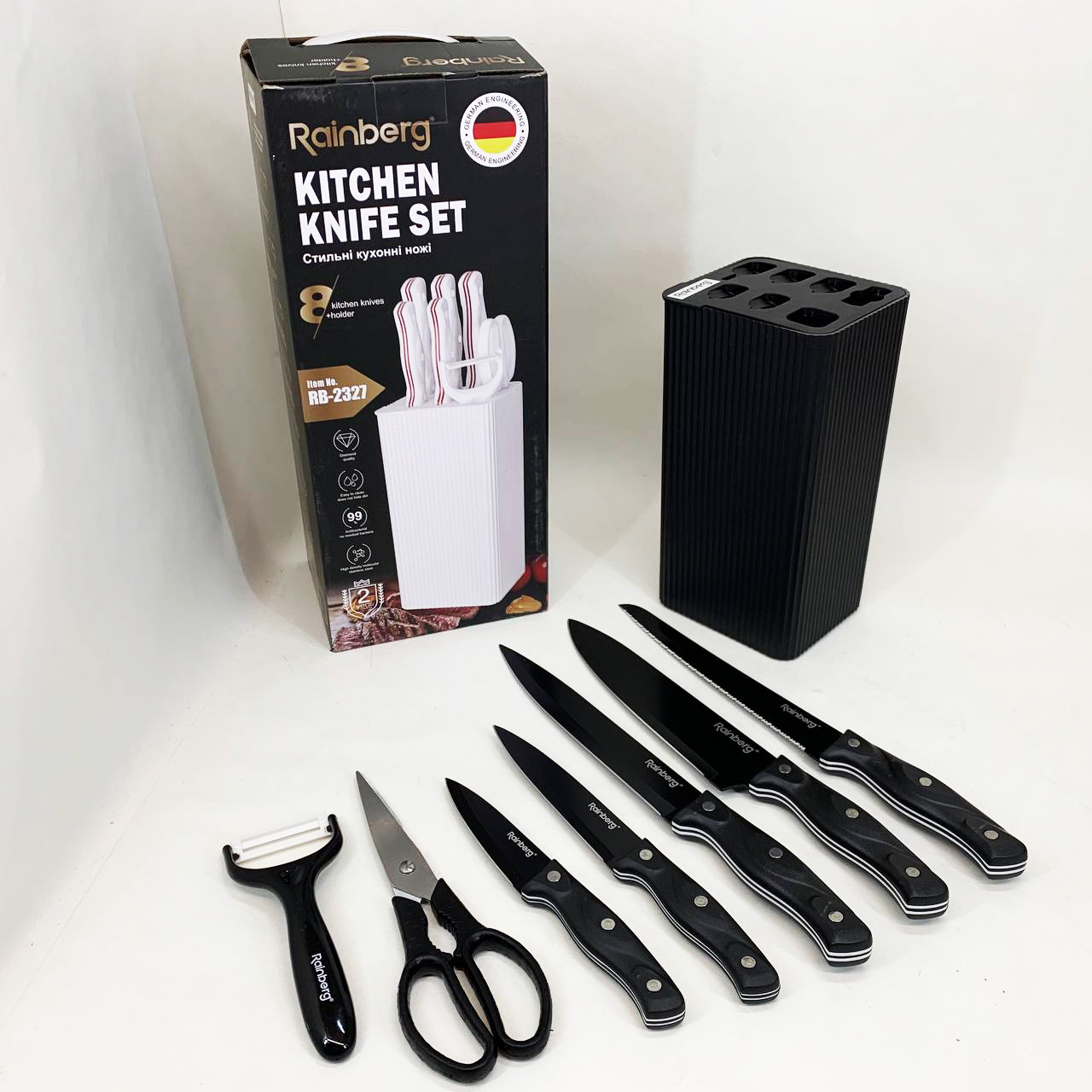 Набір ножів із нержавіючої сталі з основою Rainberg RB-2327 Black