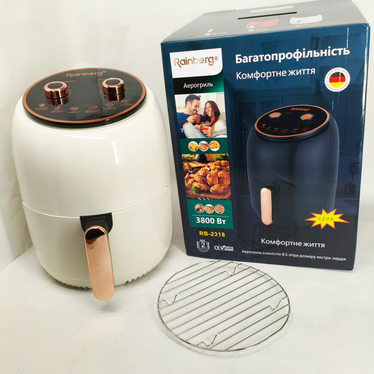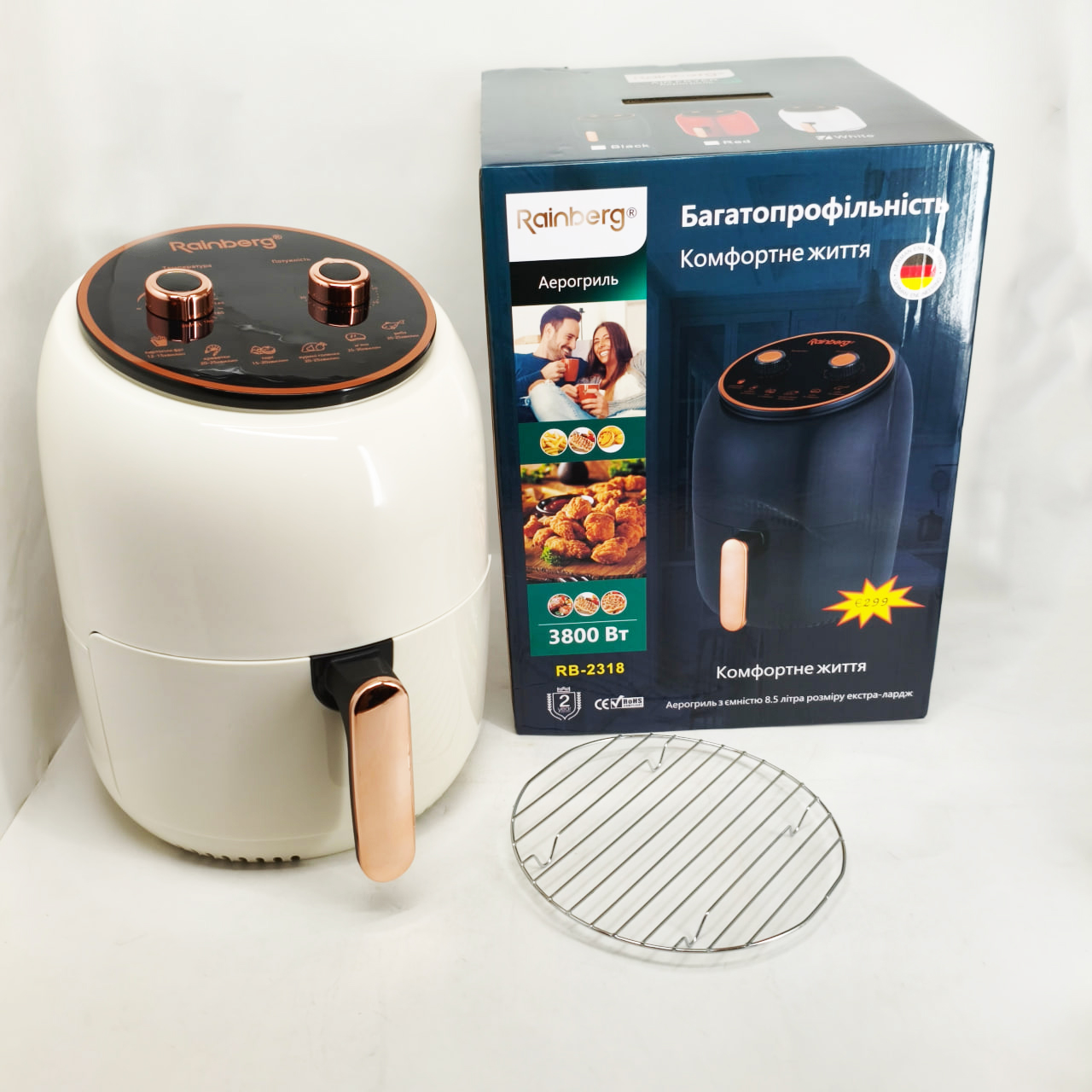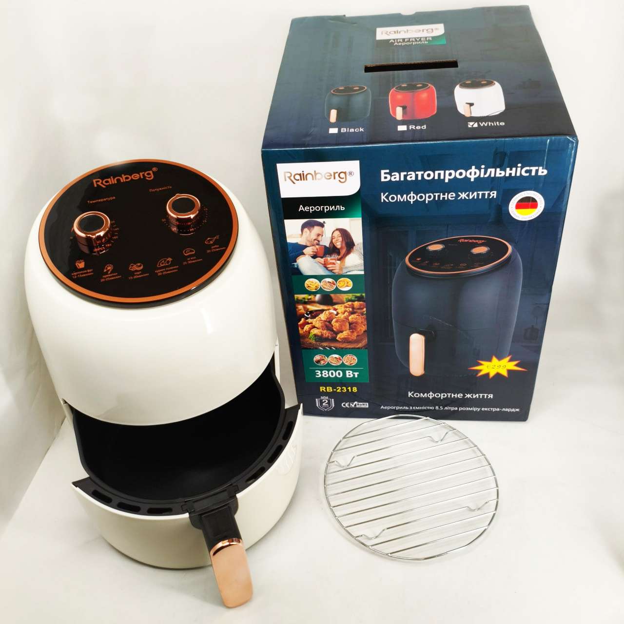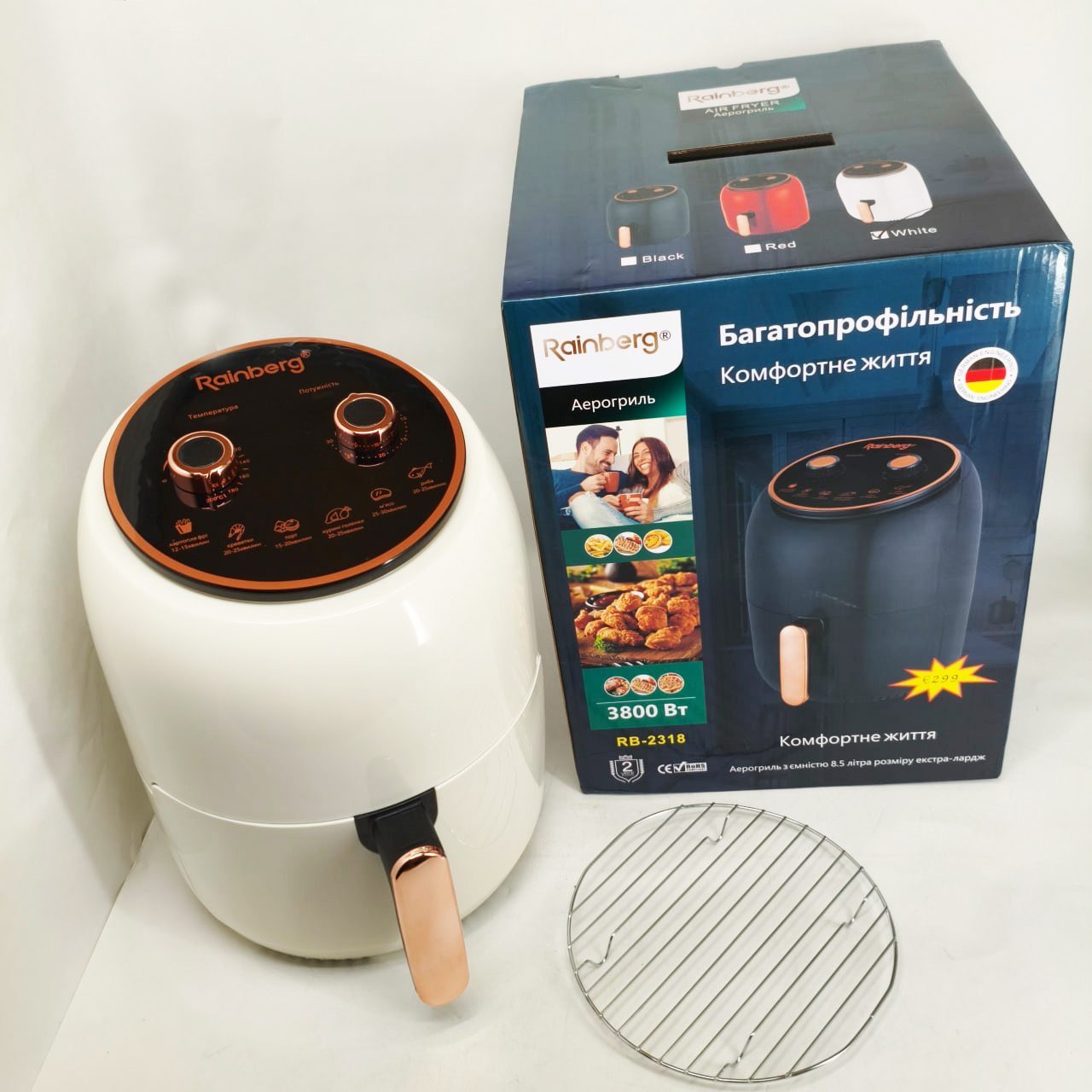 Електро Фритюрниця безмасляна Rainberg RB-2318 3800 Вт з знімним кошиком 8.5л до 30 хв White