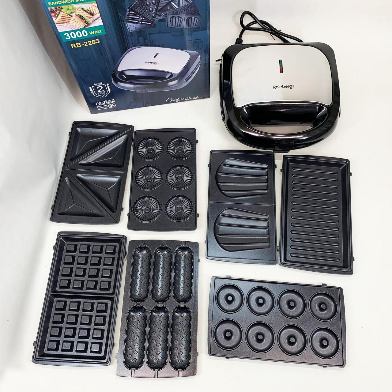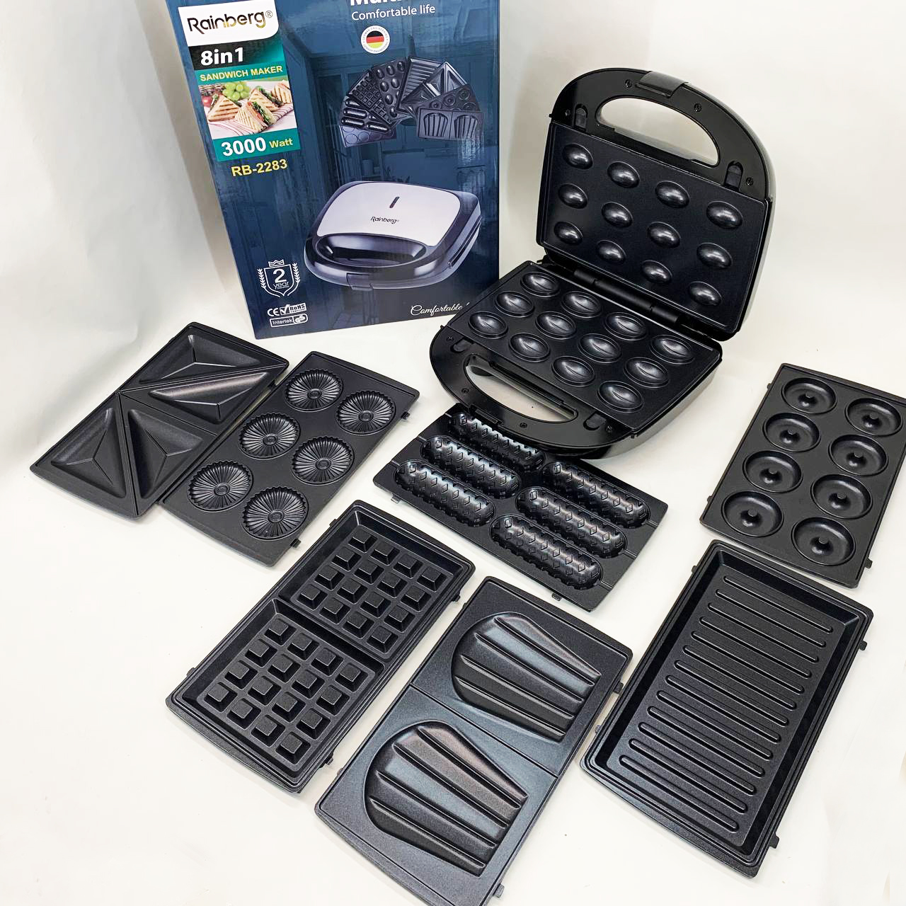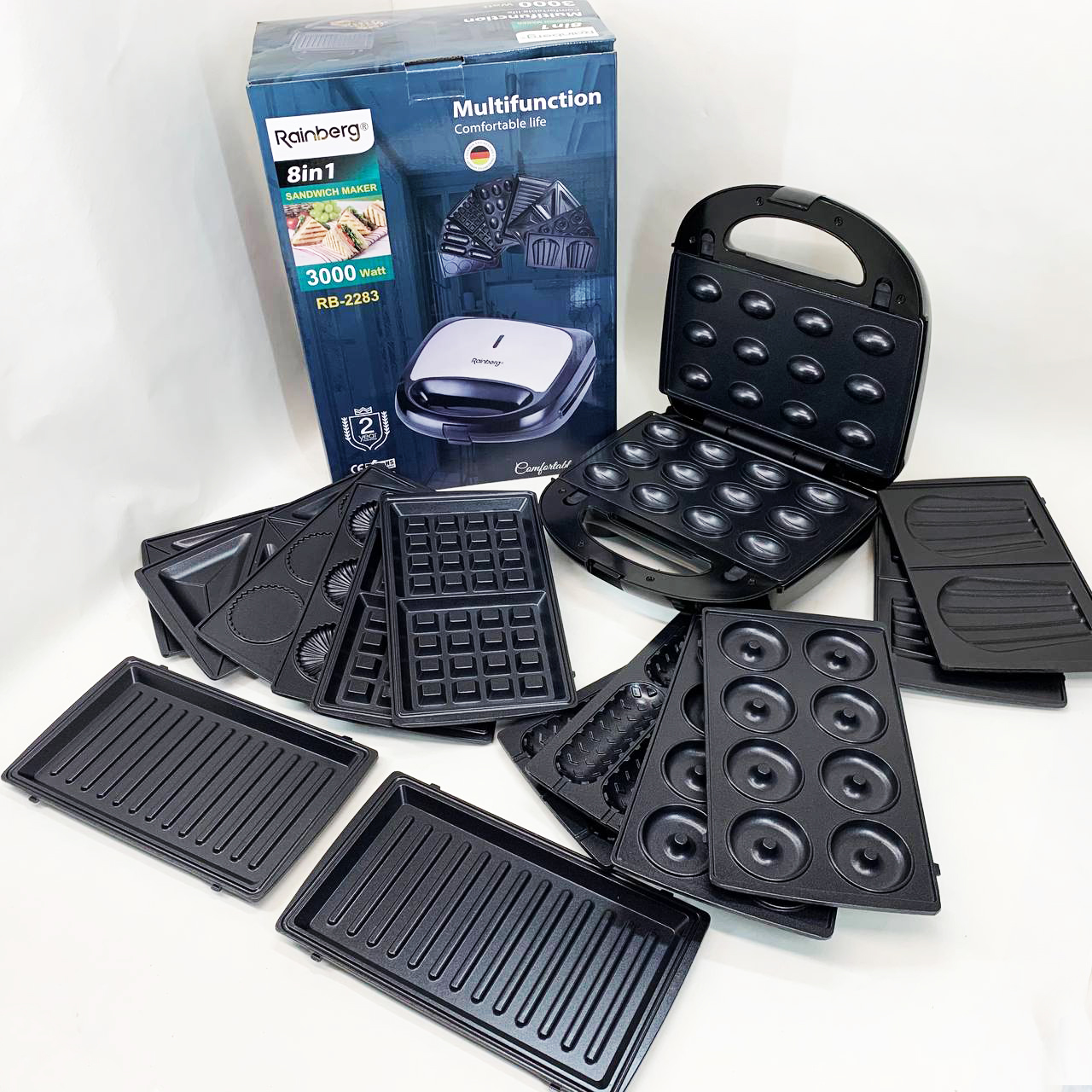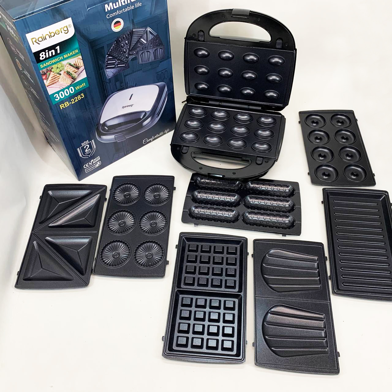 Електрична бутербродниця мультимейкер 8 в 1 Rainberg RB-2283 3000Вт із змінними насадками