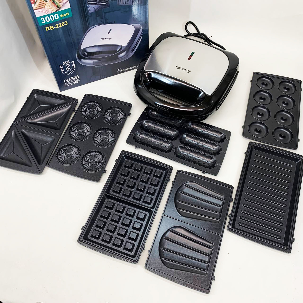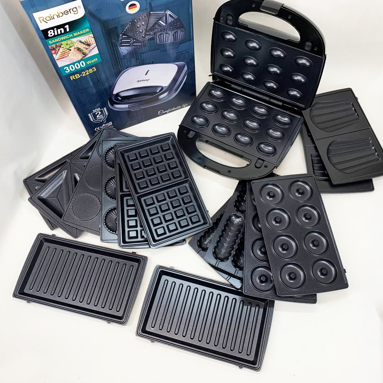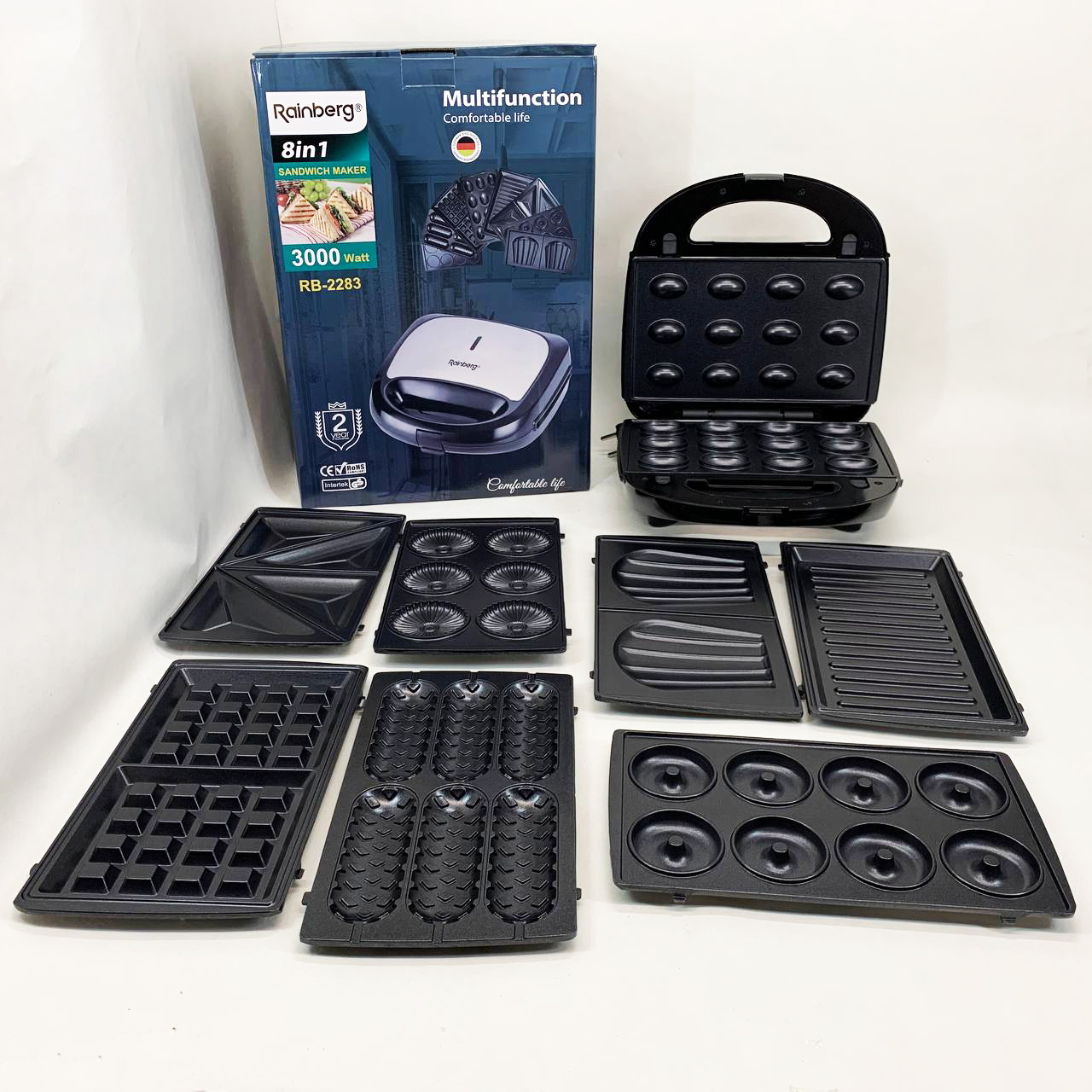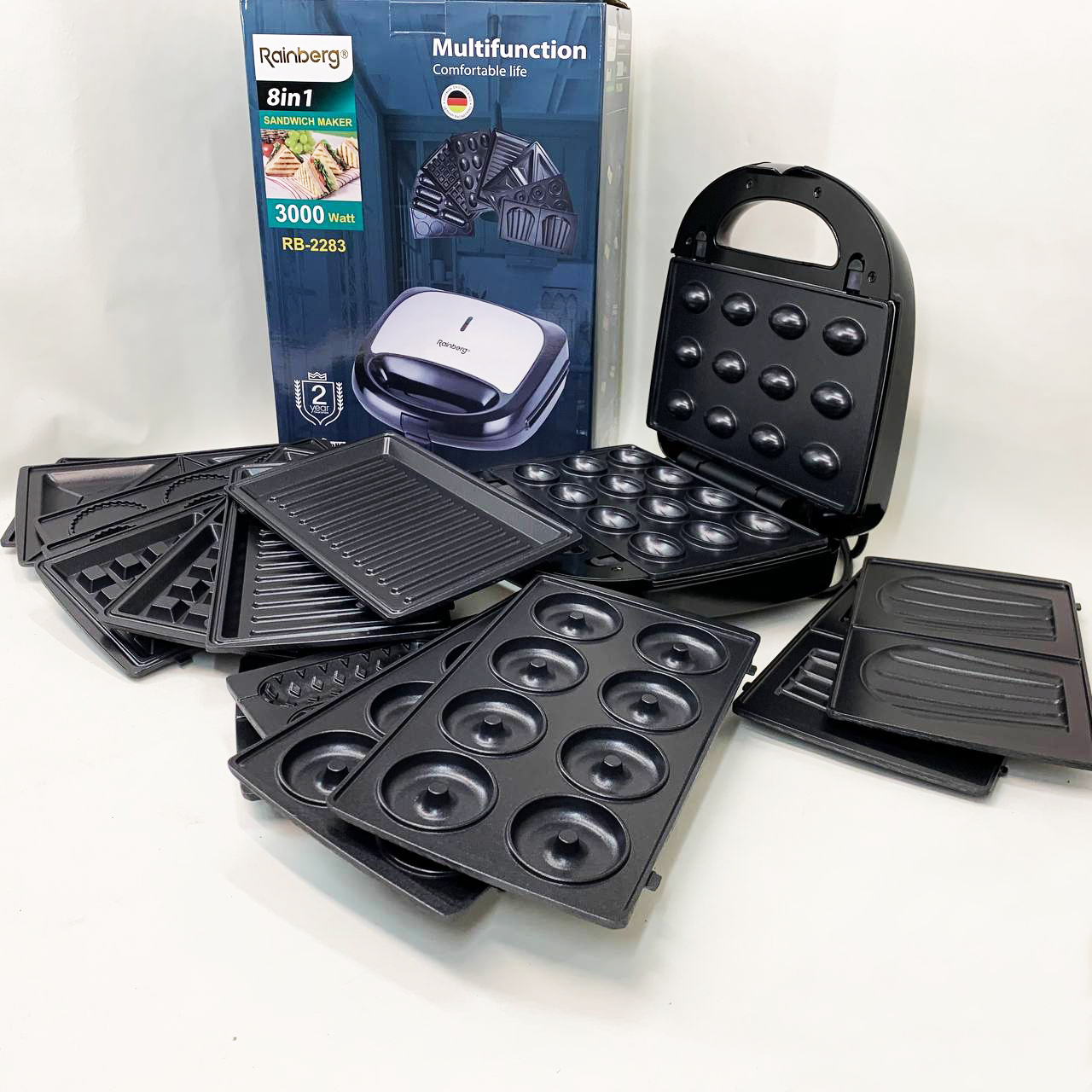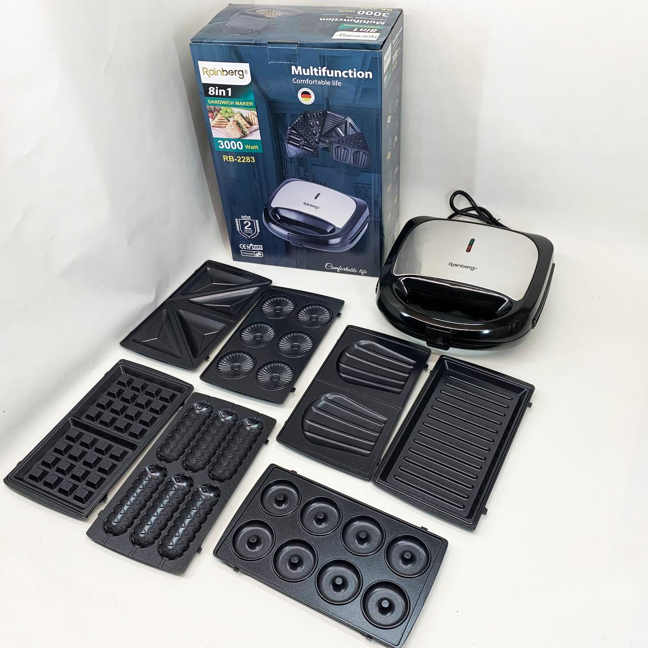 Електрична бутербродниця мультимейкер 8 в 1 Rainberg RB-2283 3000Вт із змінними насадками