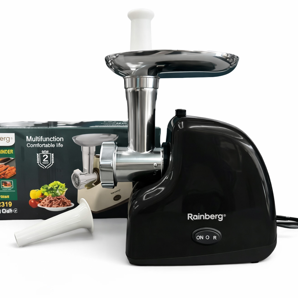 М'ясорубка електрична Rainberg RB-2319 із системою реверсу насадка куббе 3000Вт Black