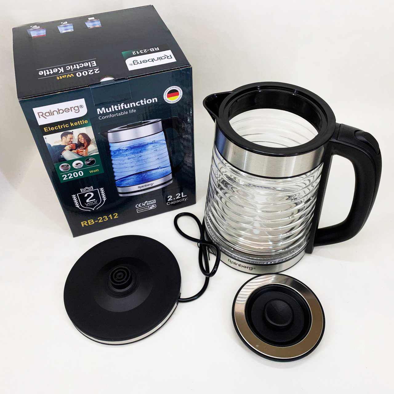 Електрочайник Rainberg RB-2312 – це зручний і функціональний помічник на кухні, що поєднує в собі потужність 2200 Вт, сучасний дизайн і надійність. Ідеально підходить для дому, офісу чи дачі.