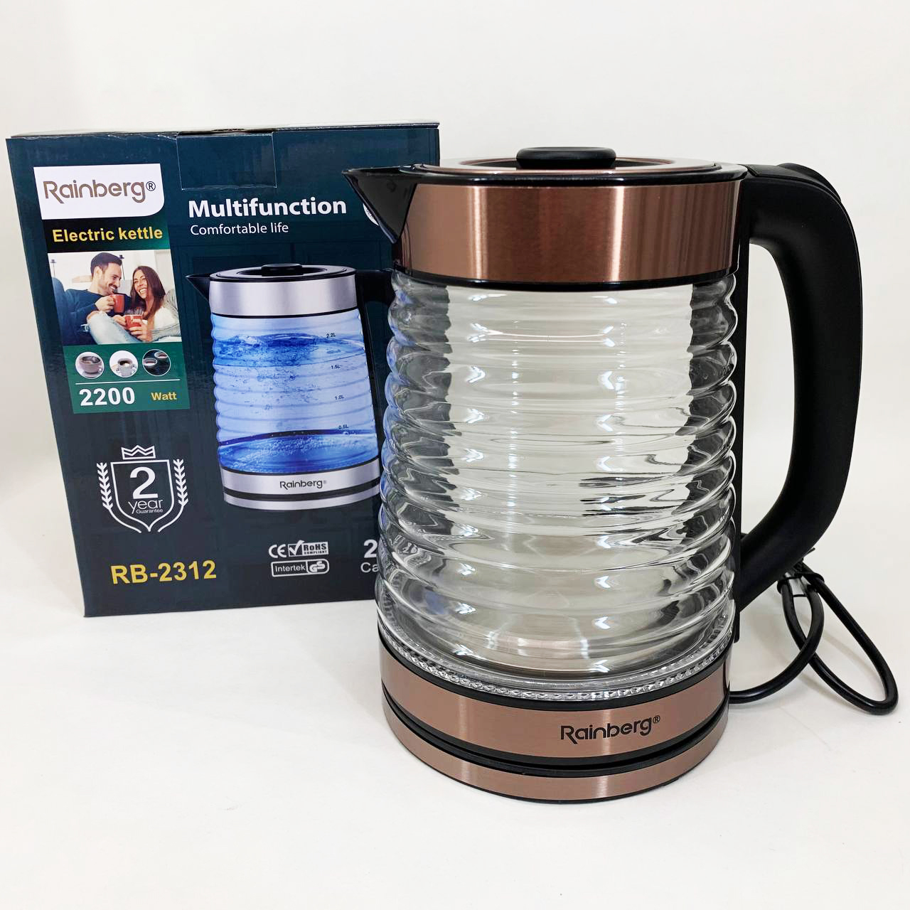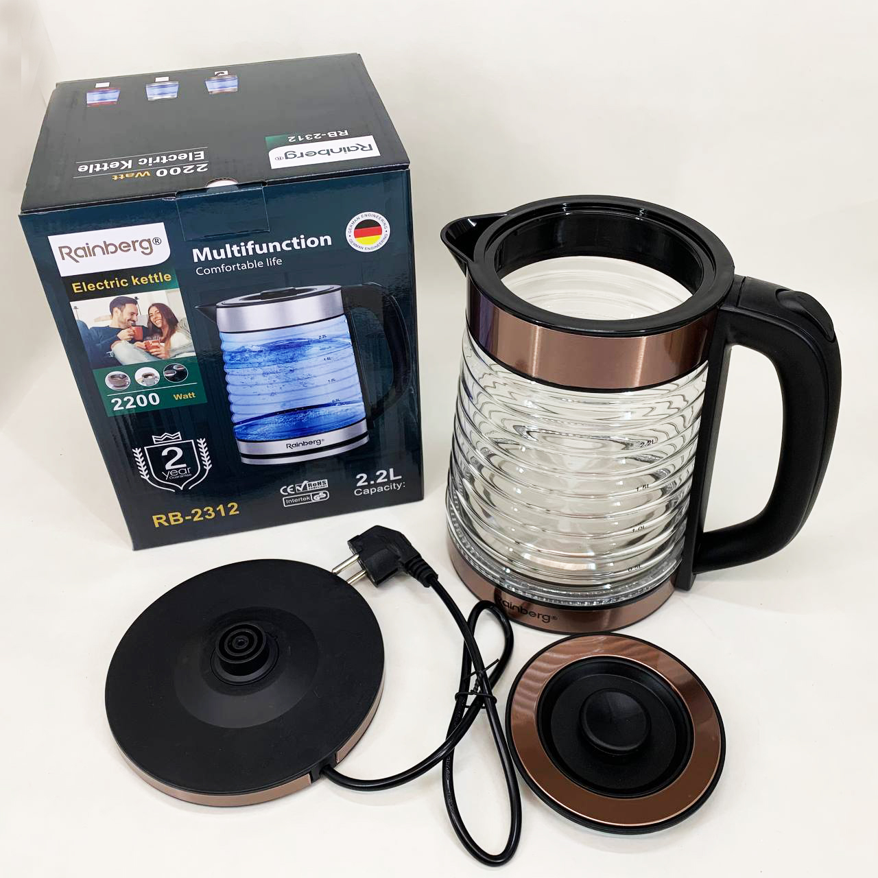Електрочайник Rainberg RB-2312 – це зручний і функціональний помічник на кухні, що поєднує в собі потужність 2200 Вт, сучасний дизайн і надійність. Ідеально підходить для дому, офісу чи дачі.