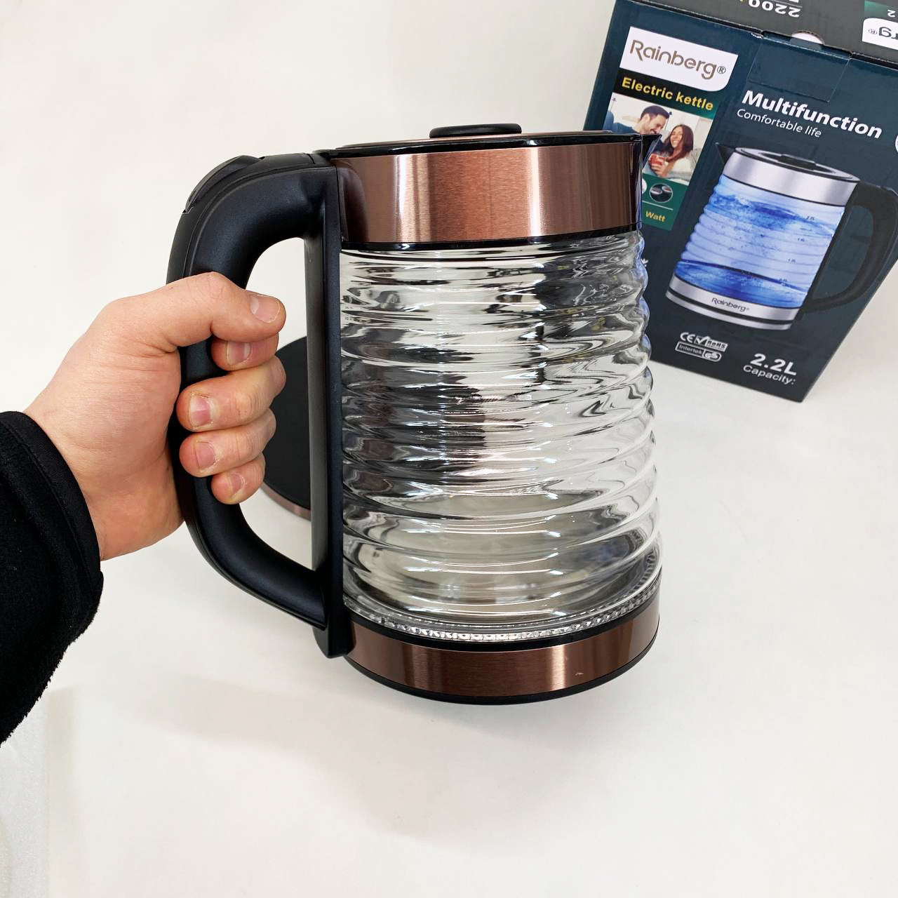 Електрочайник Rainberg RB-2312 скляний дисковий чайник 2.2л 2200Вт Brown