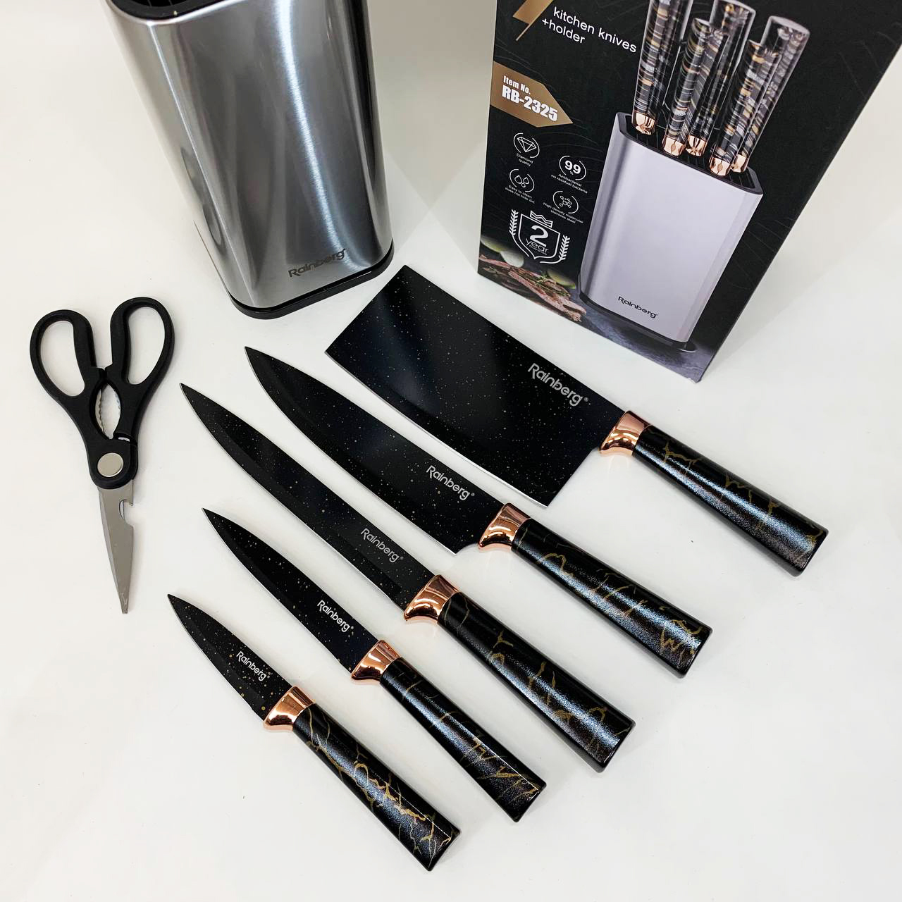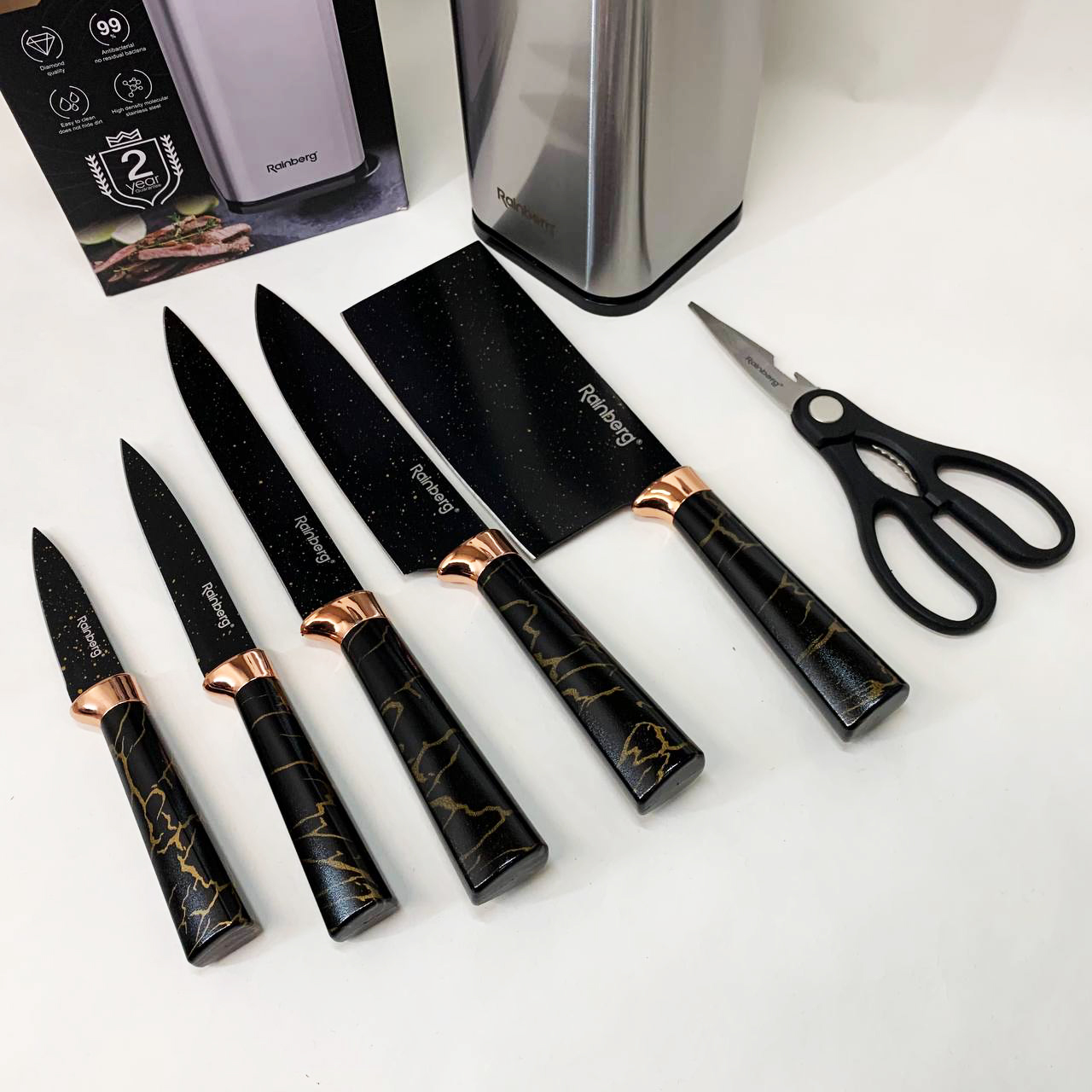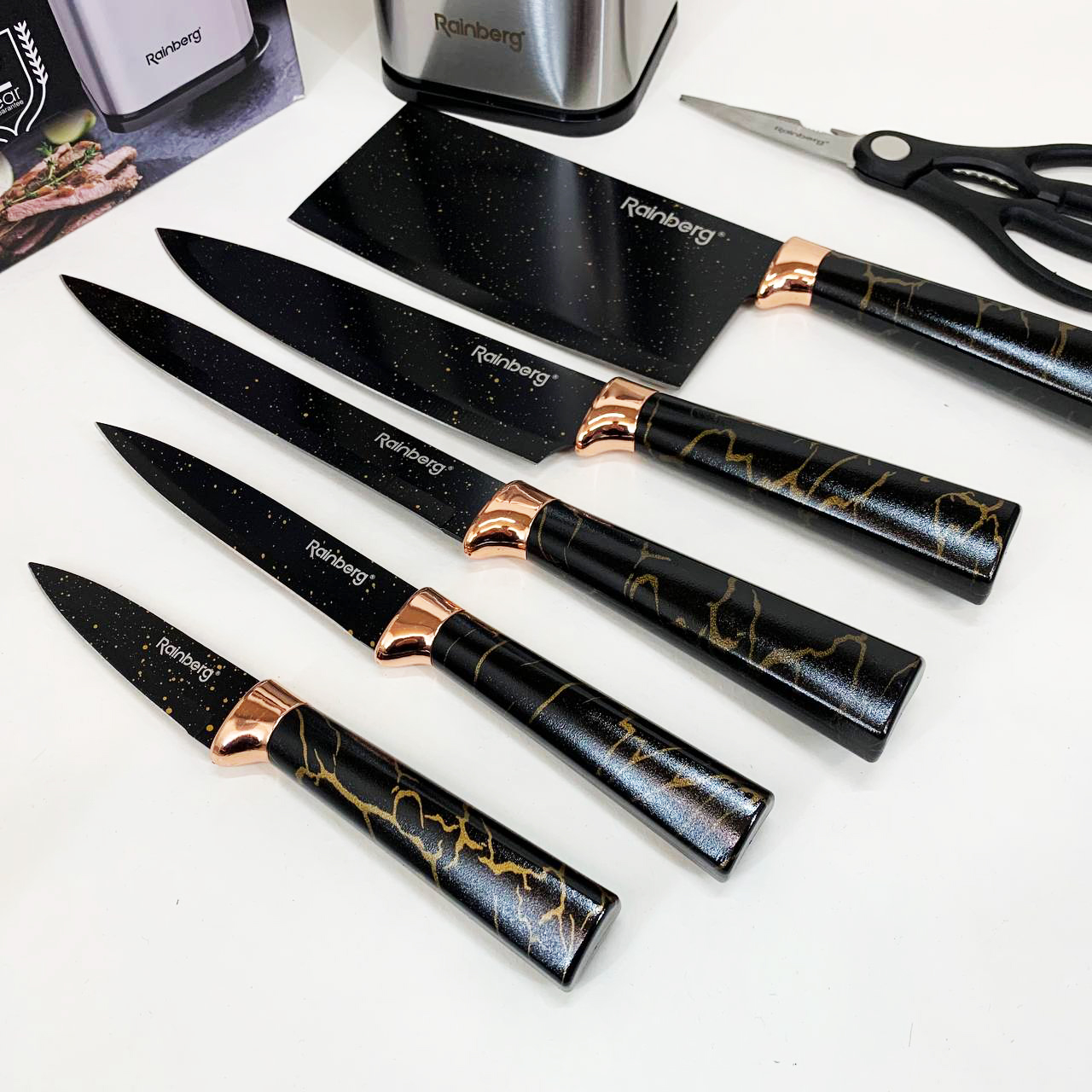 Набір ножів з нержавіючої сталі з підставою Rainberg RB-2325 Black