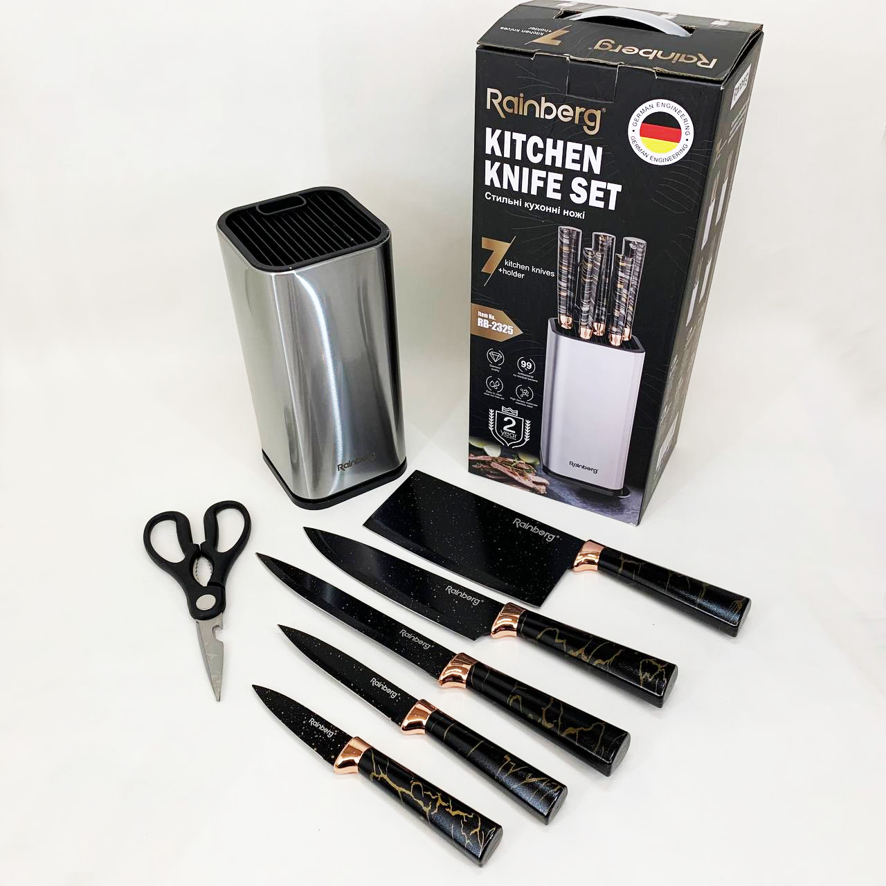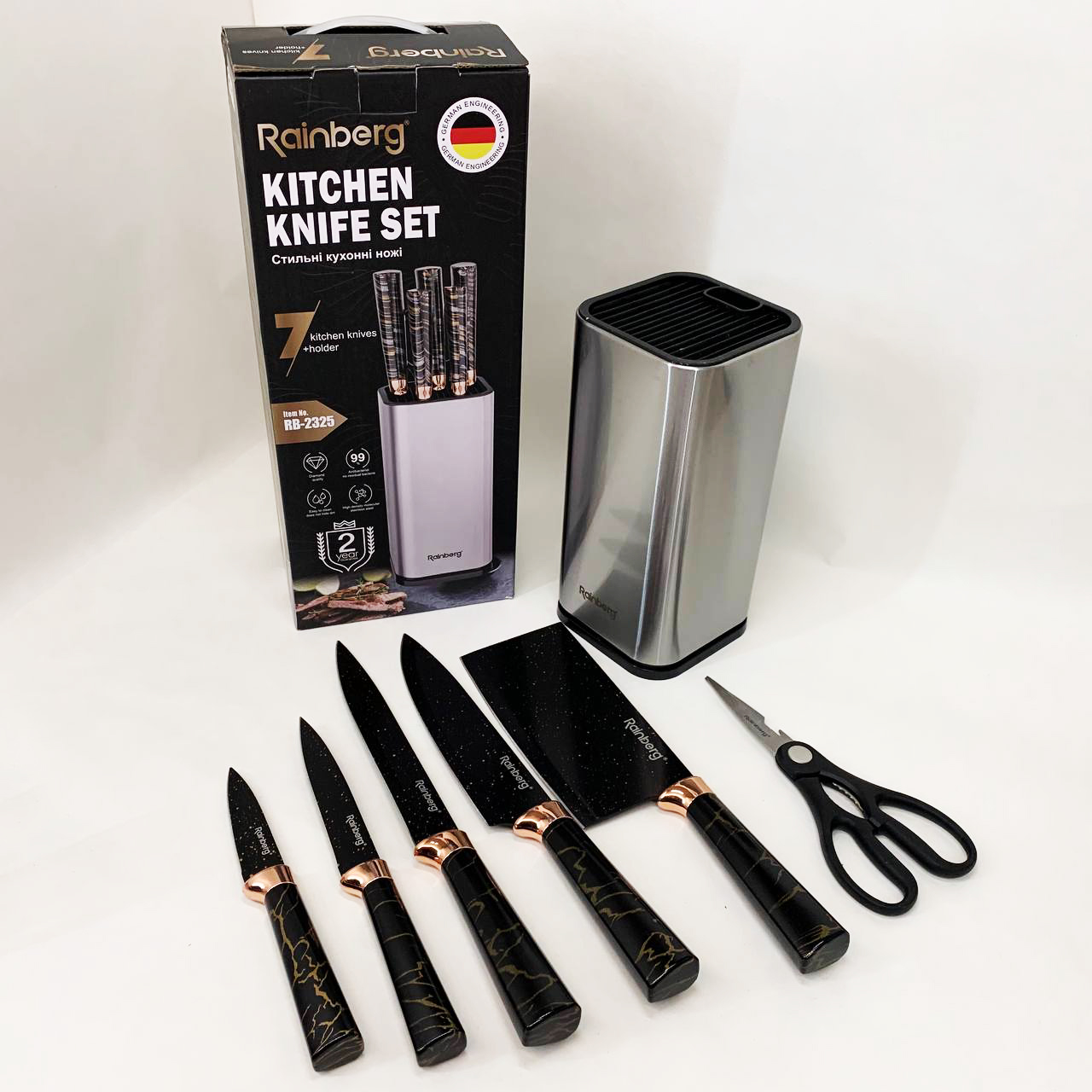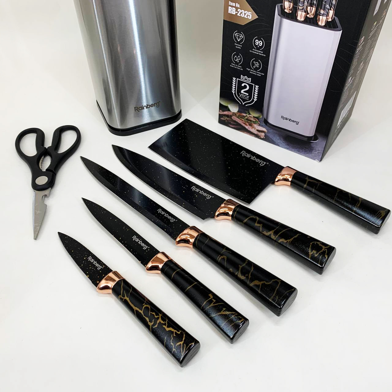 Набір ножів з нержавіючої сталі з підставою Rainberg RB-2325 Black