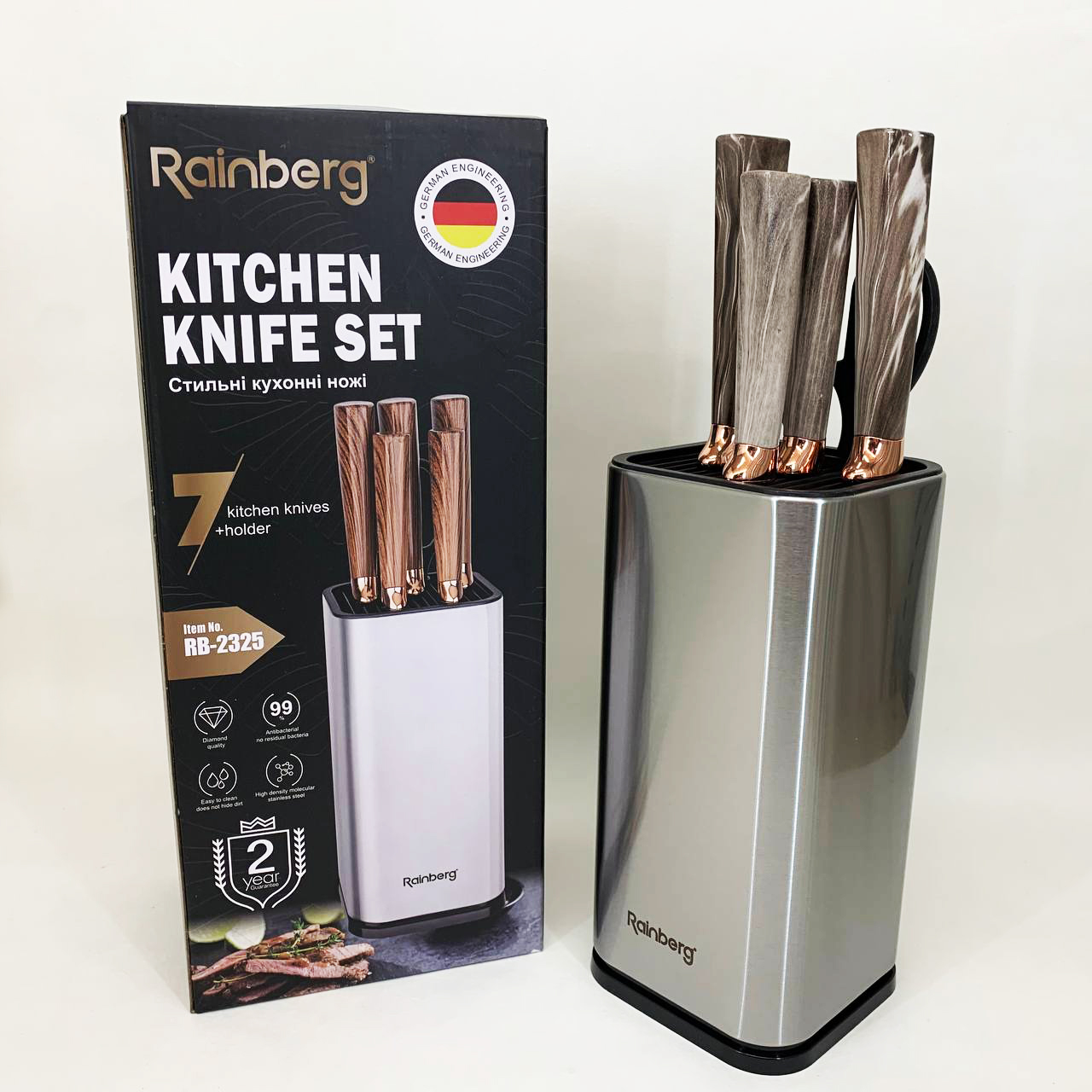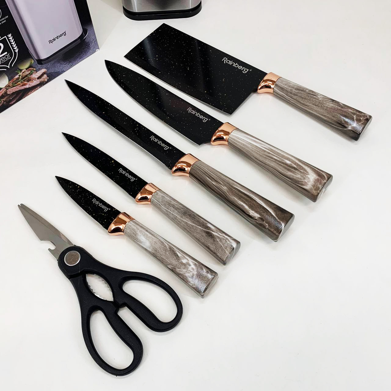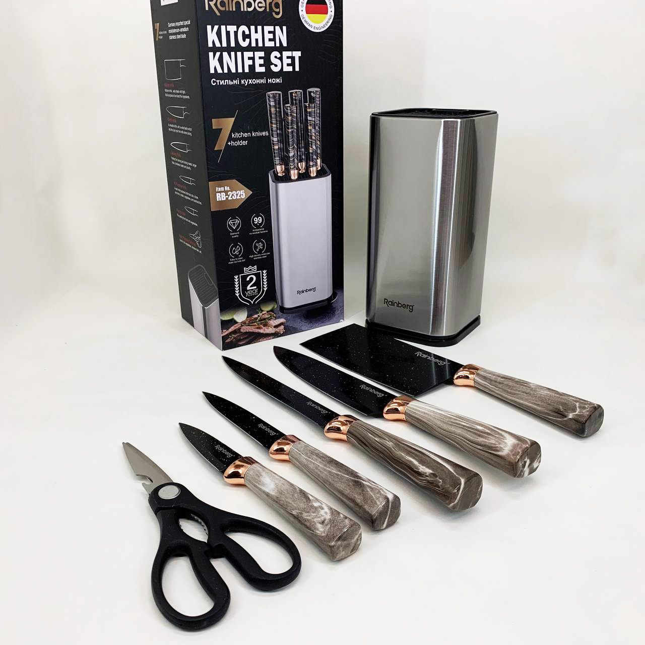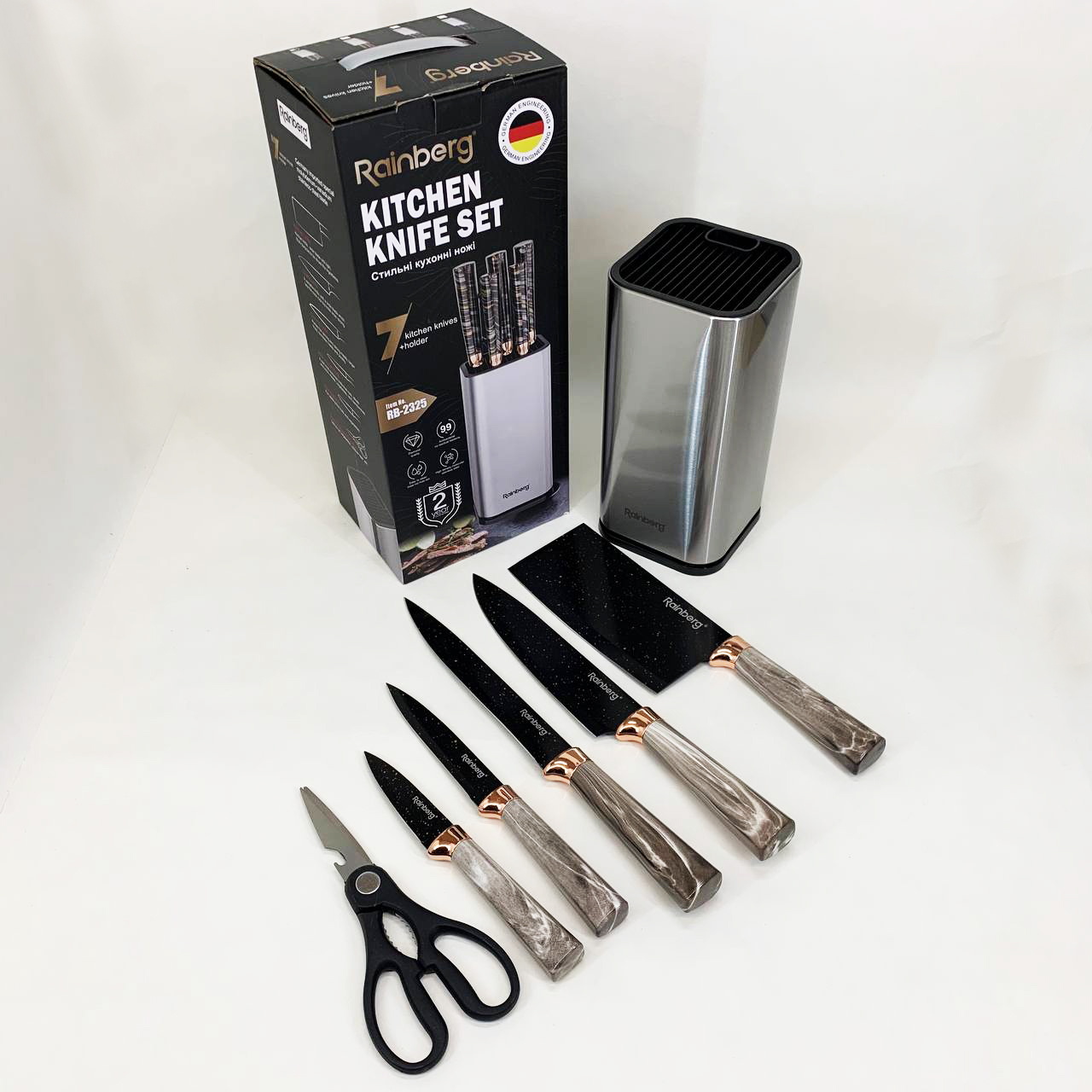 Набір ножів з нержавіючої сталі з основою Rainberg RB-2325 White