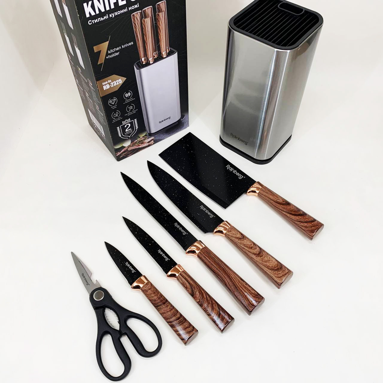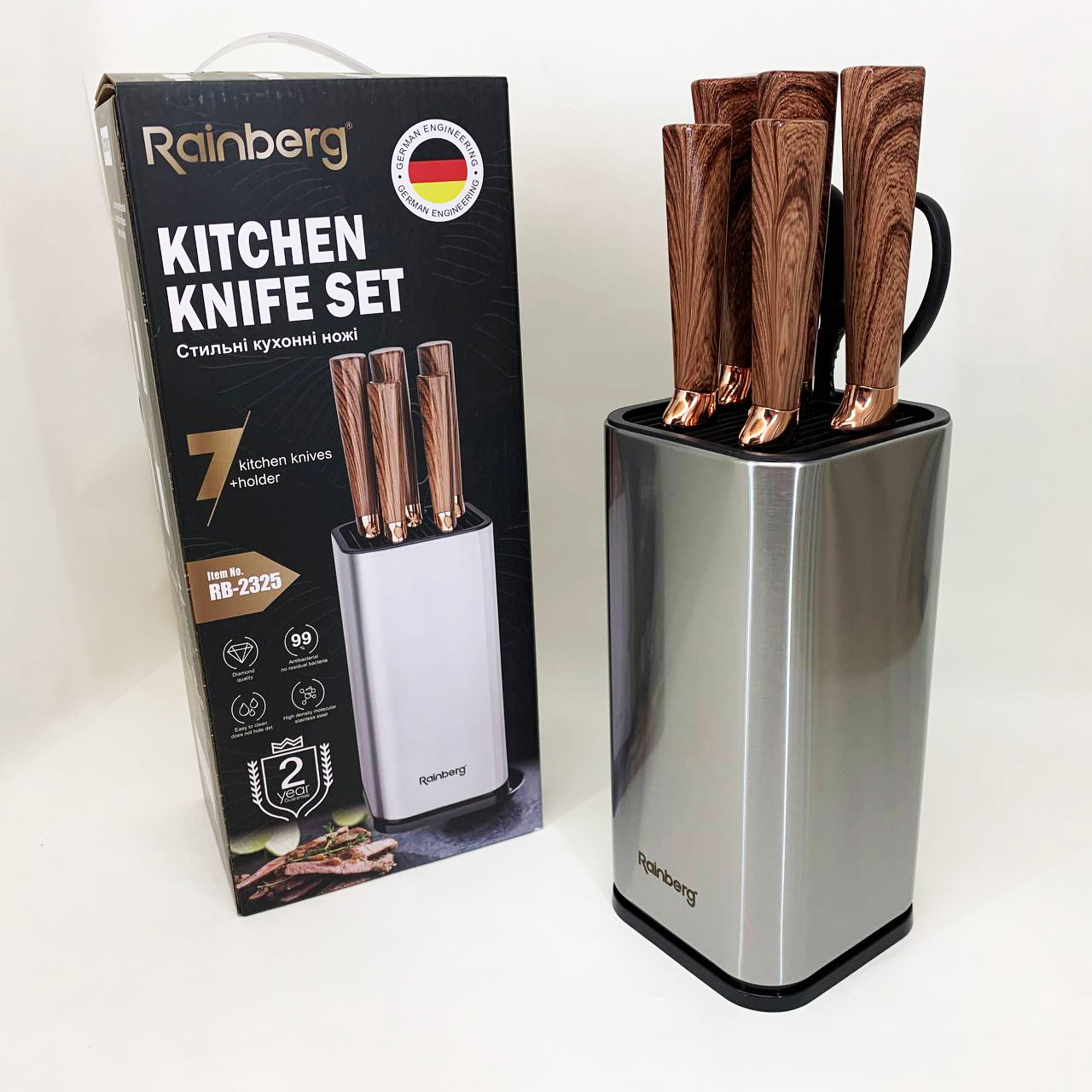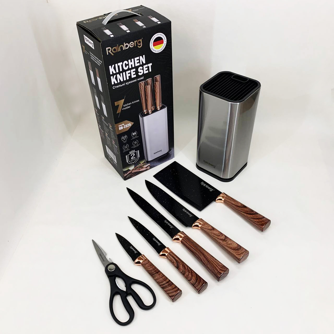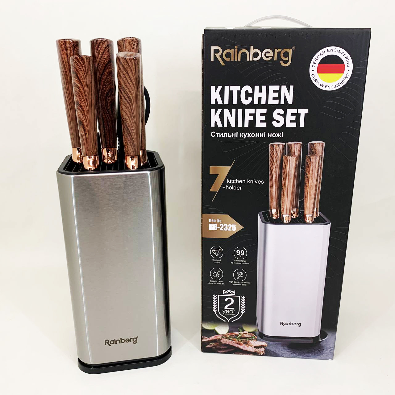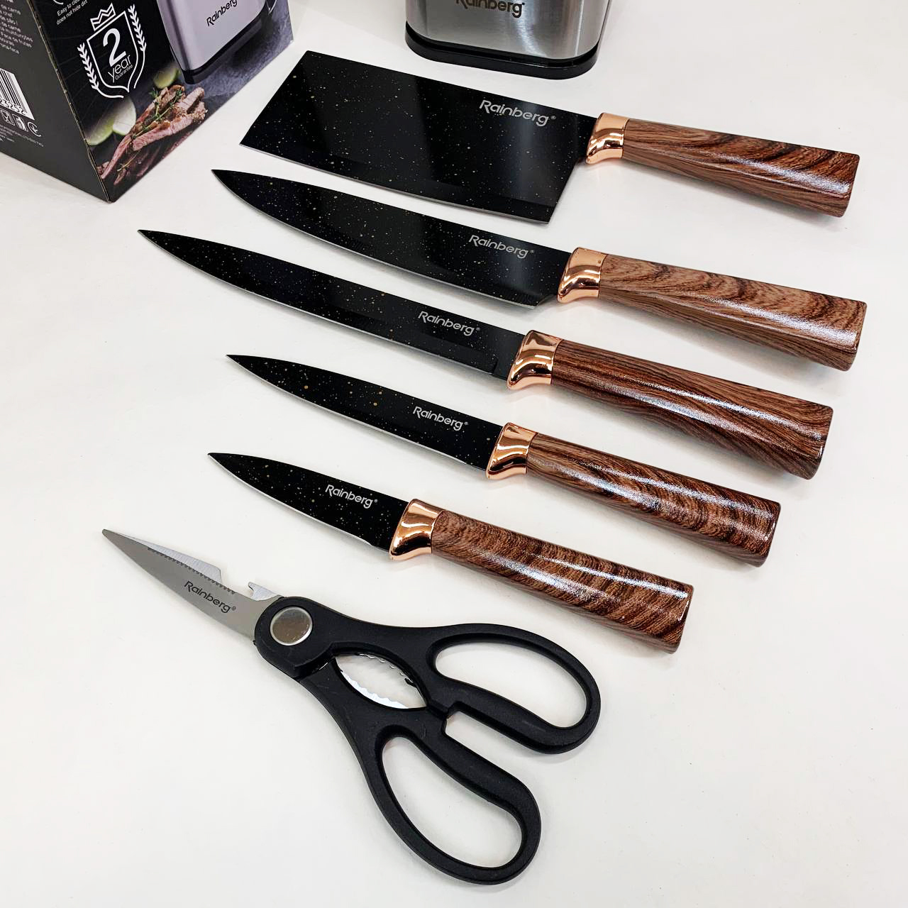 Набір ножів із нержавіючої сталі з основою Rainberg RB-2325 Brown