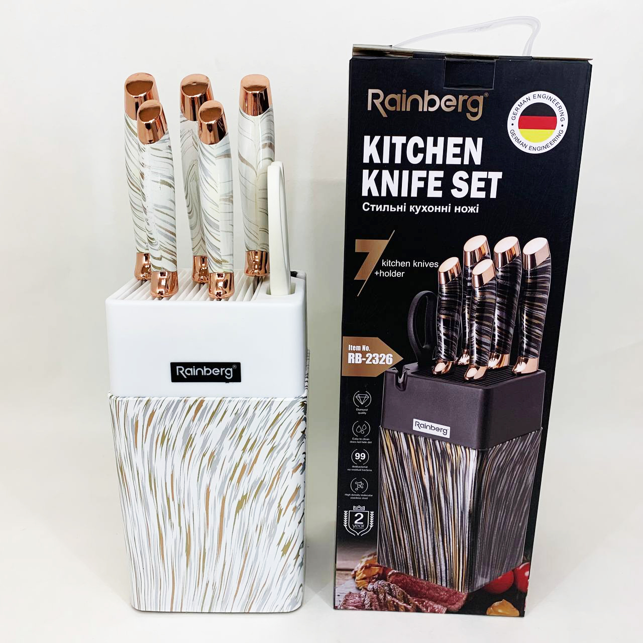 Набір ножів із нержавіючої сталі з основою Rainberg RB-2326 White