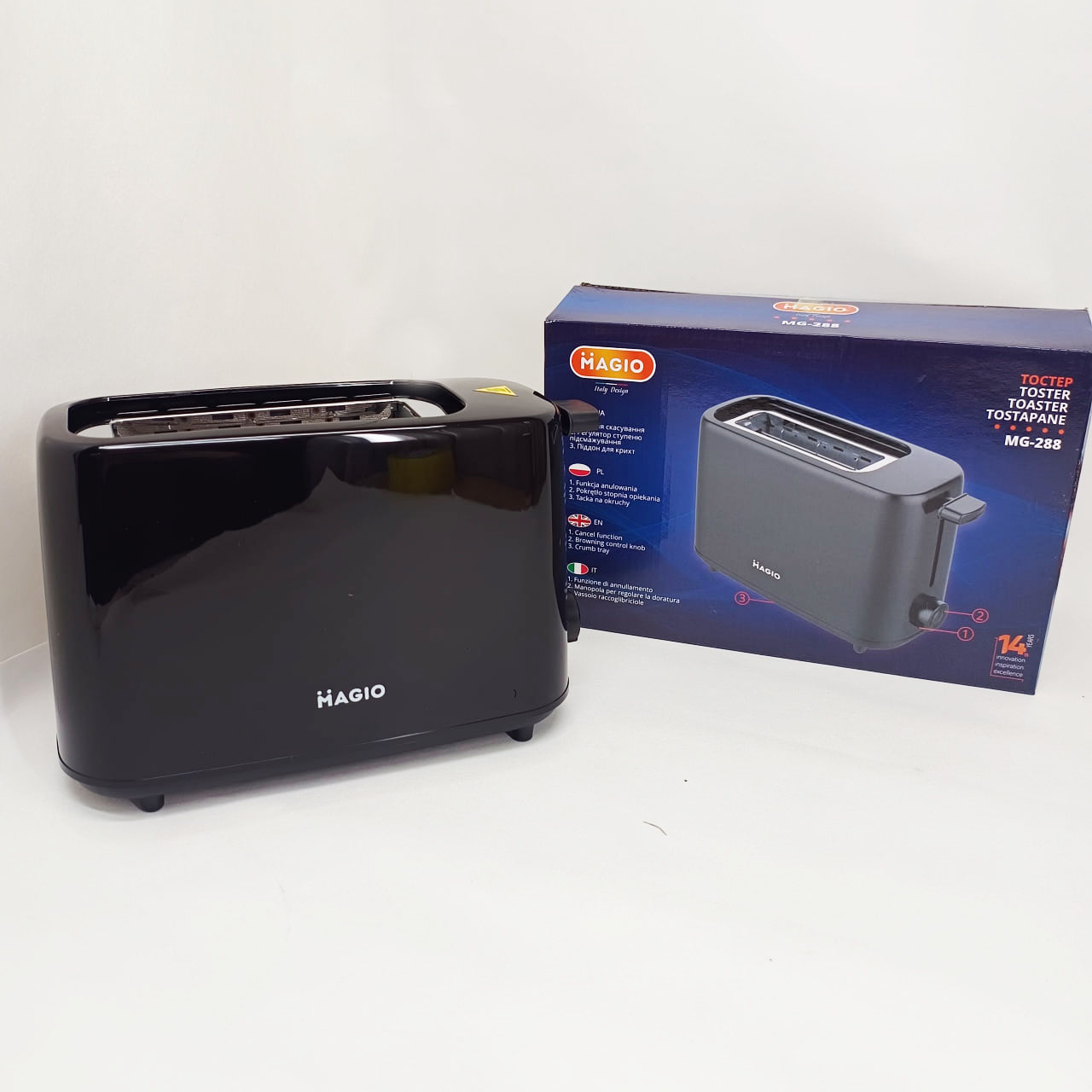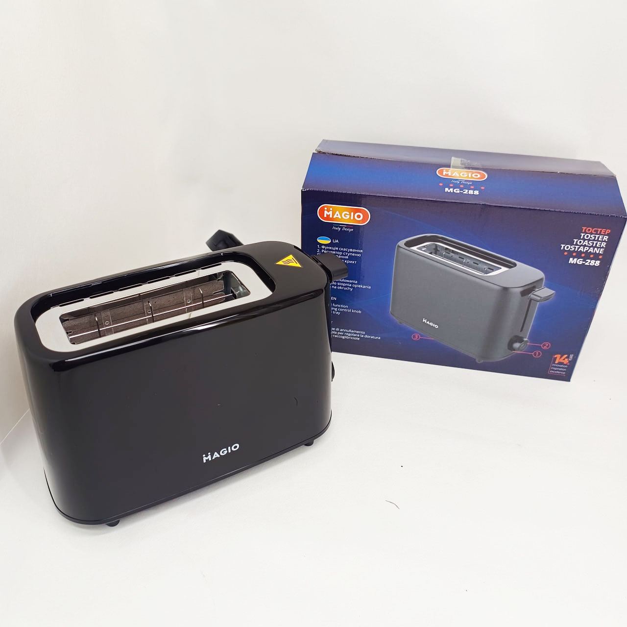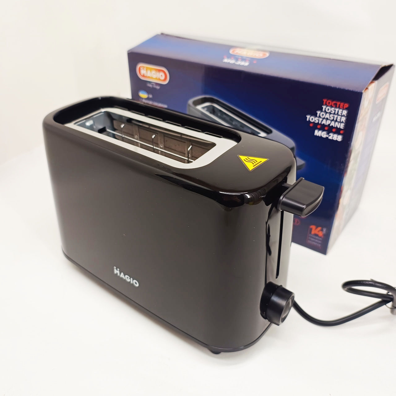 Тостер MG-288 оптимально підходить для невеликої кухні, офісу або студії, де важлива компактність і швидкість. Він допоможе приготувати сніданок або легкий перекус без зайвих складнощів, економлячи час і мінімізуючи обсяг миття. Завдяки шести ступеням прожарювання він дозволяє індивідуально налаштовувати інтенсивність підсмажування, що особливо цінно для любителів різних видів хліба – від ніжної білої булочки до цільнозернового хліба з більш щільною структурою. Функція швидкої зупинки гарантує безпеку, а знімний піддон для крихт — підтримання чистоти навіть при щоденному використанні.