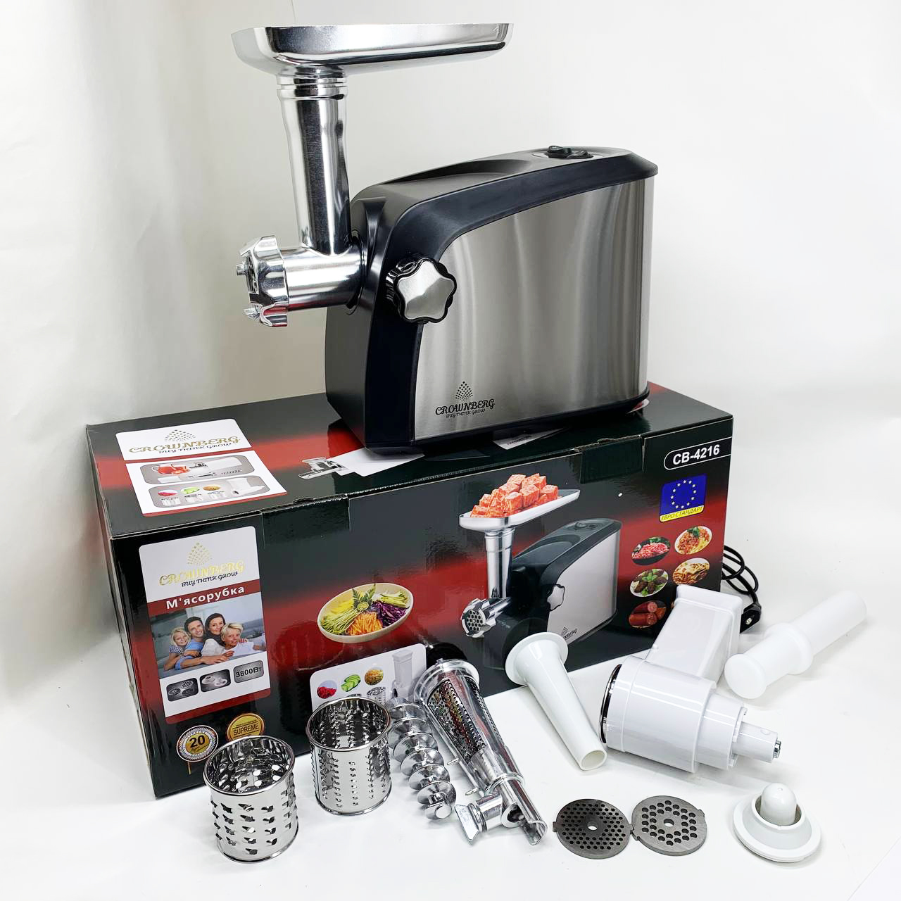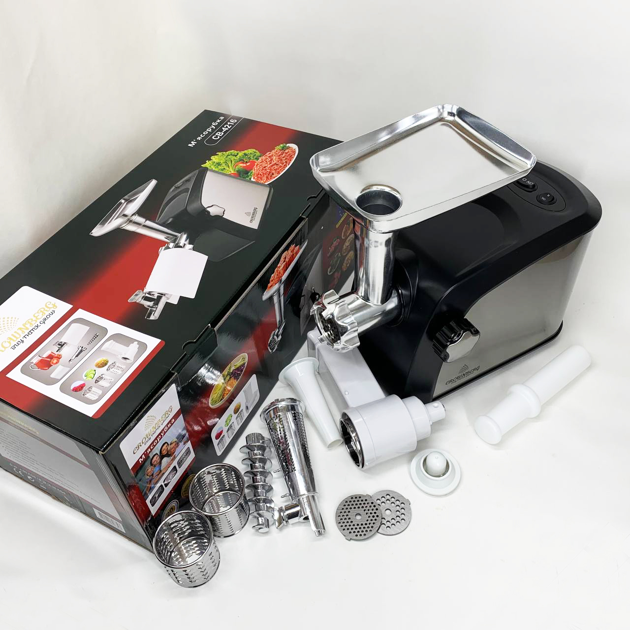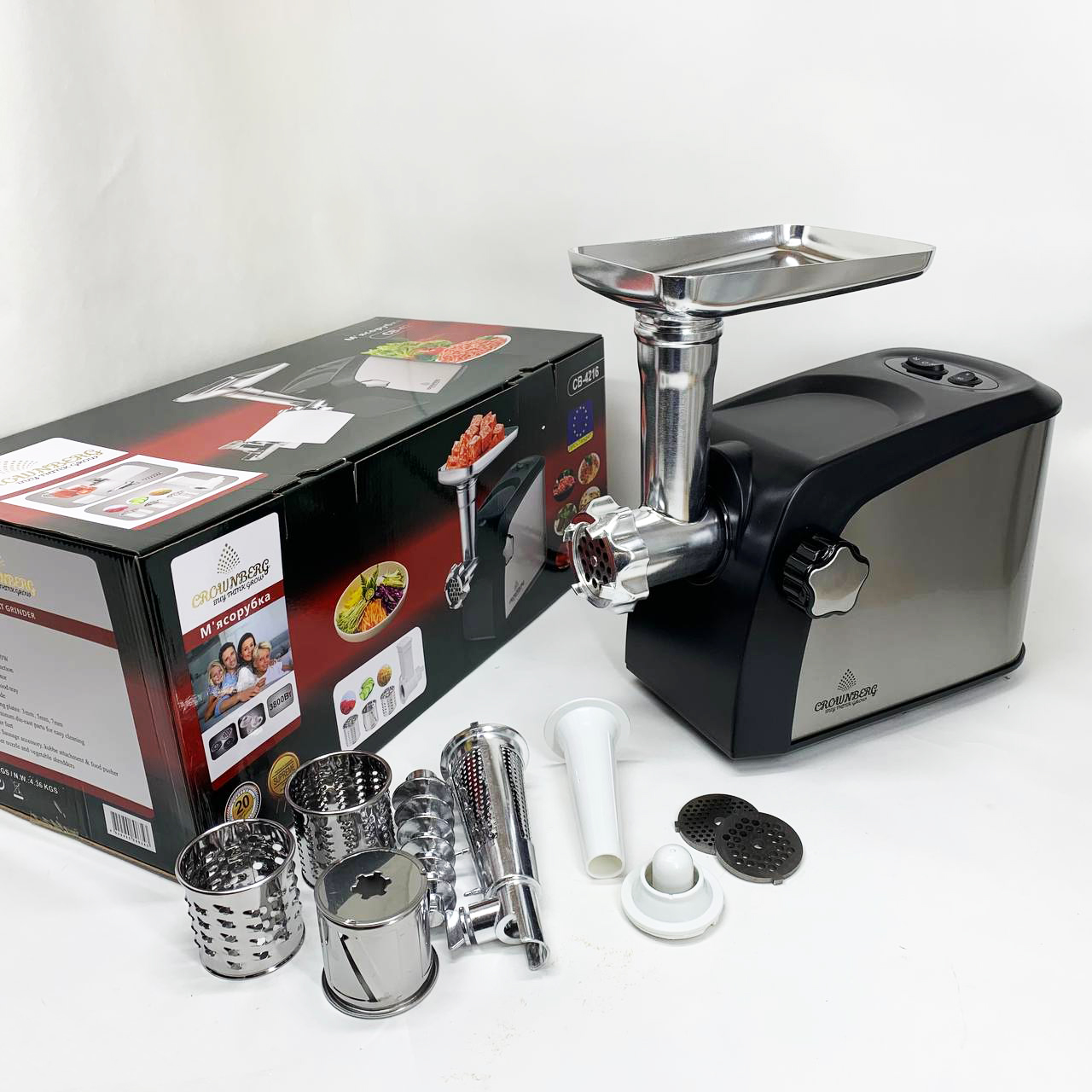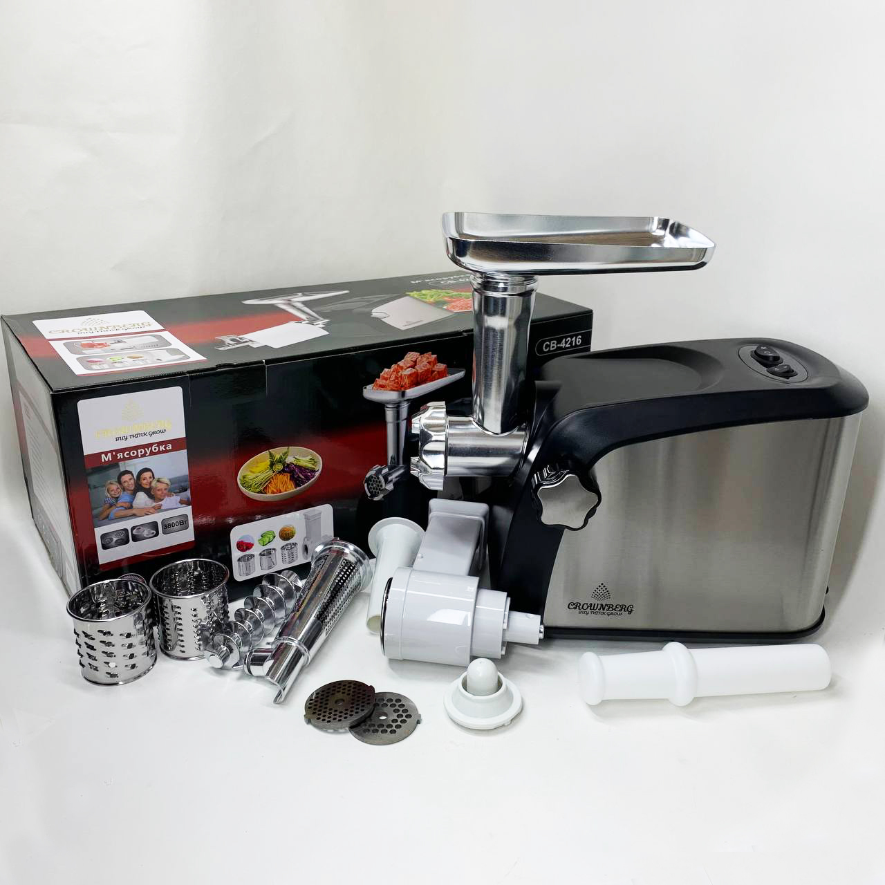 Електром'ясорубка Crownberg CB-4216 3200Вт м'ясорубка соковитискач з терками для овочів та реверсом