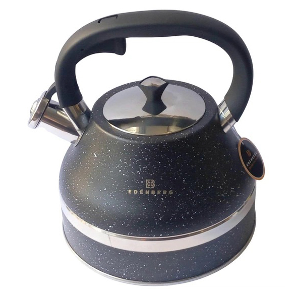 Чайник зі свистком Edenberg EB-8856 з мармуровим покриттям та турбо індукційним капсульним дном 3л Black