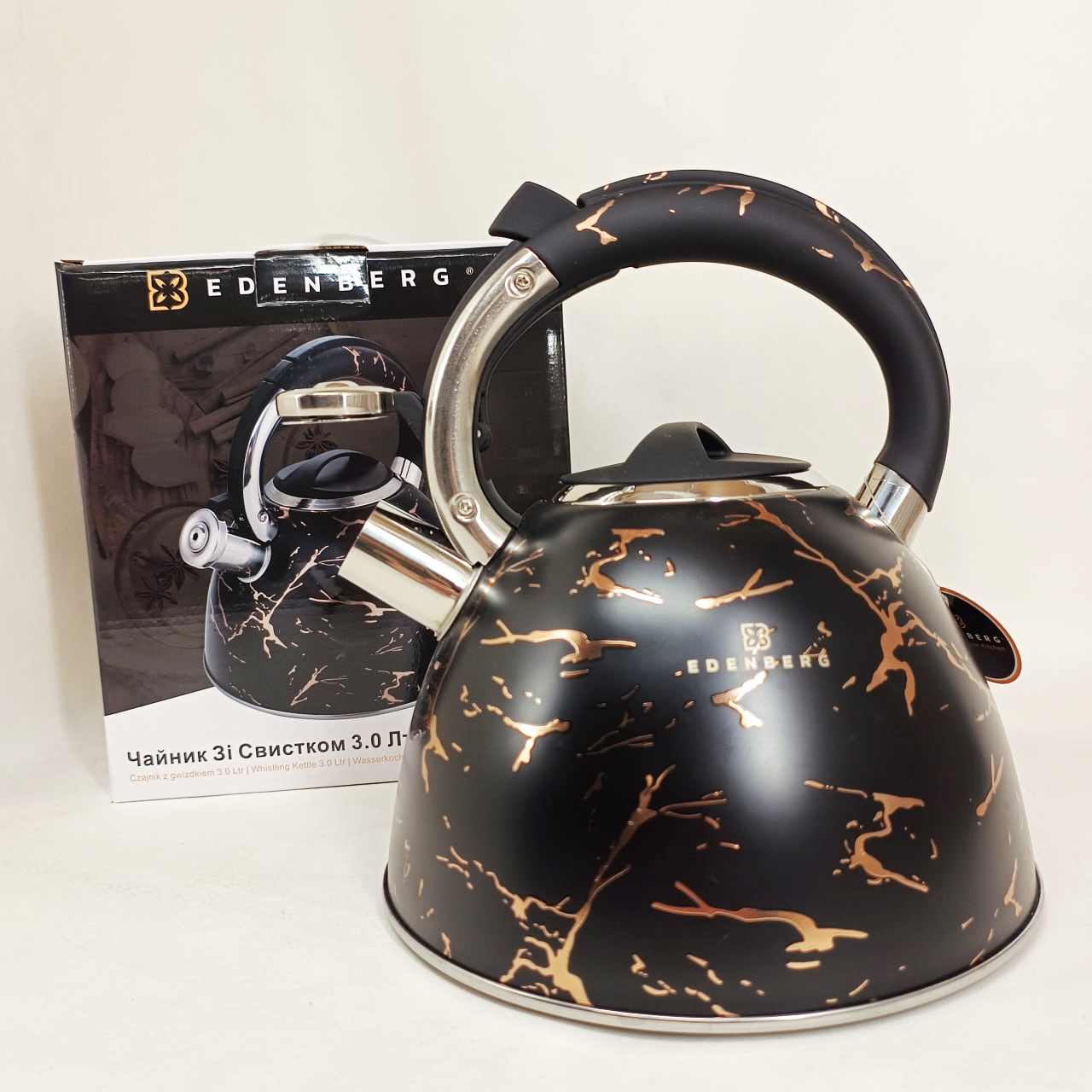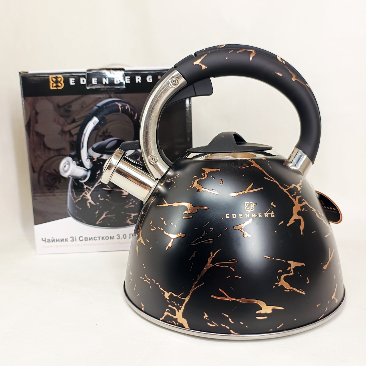 Емальований чайник Edenberg EB-12610 зі свистком та антипригарним покриттям 3л Black