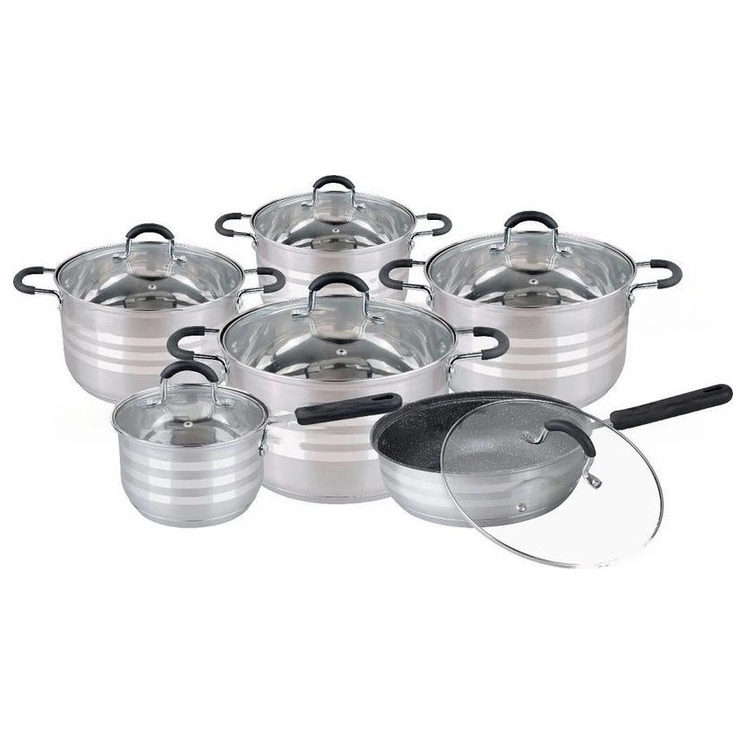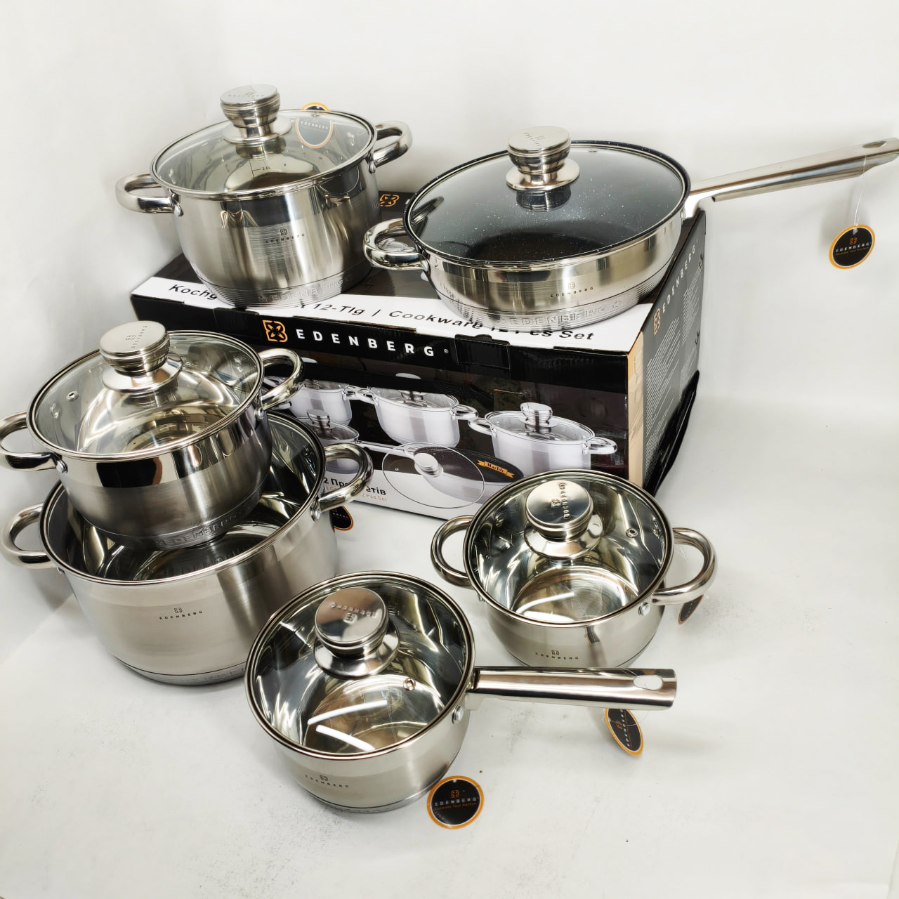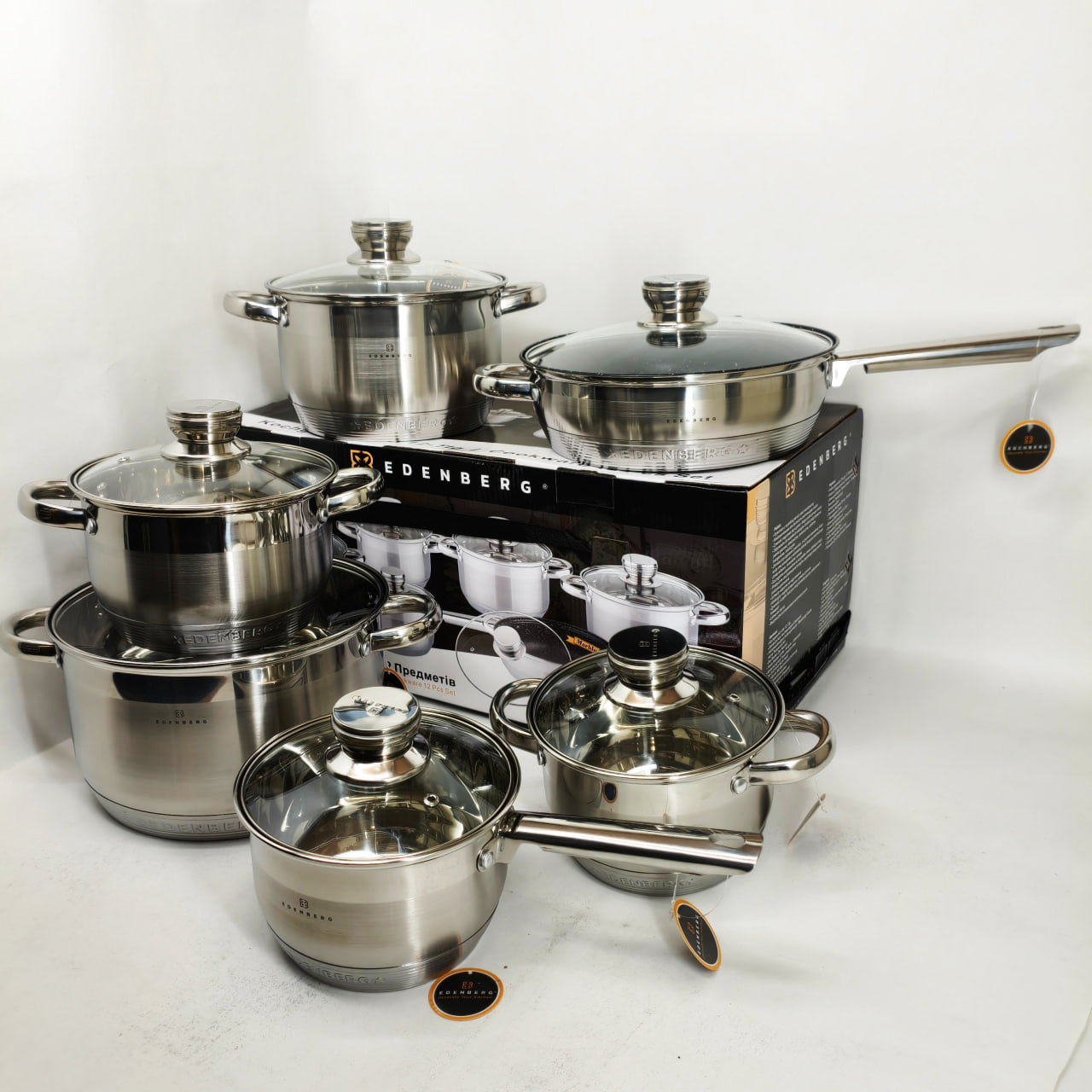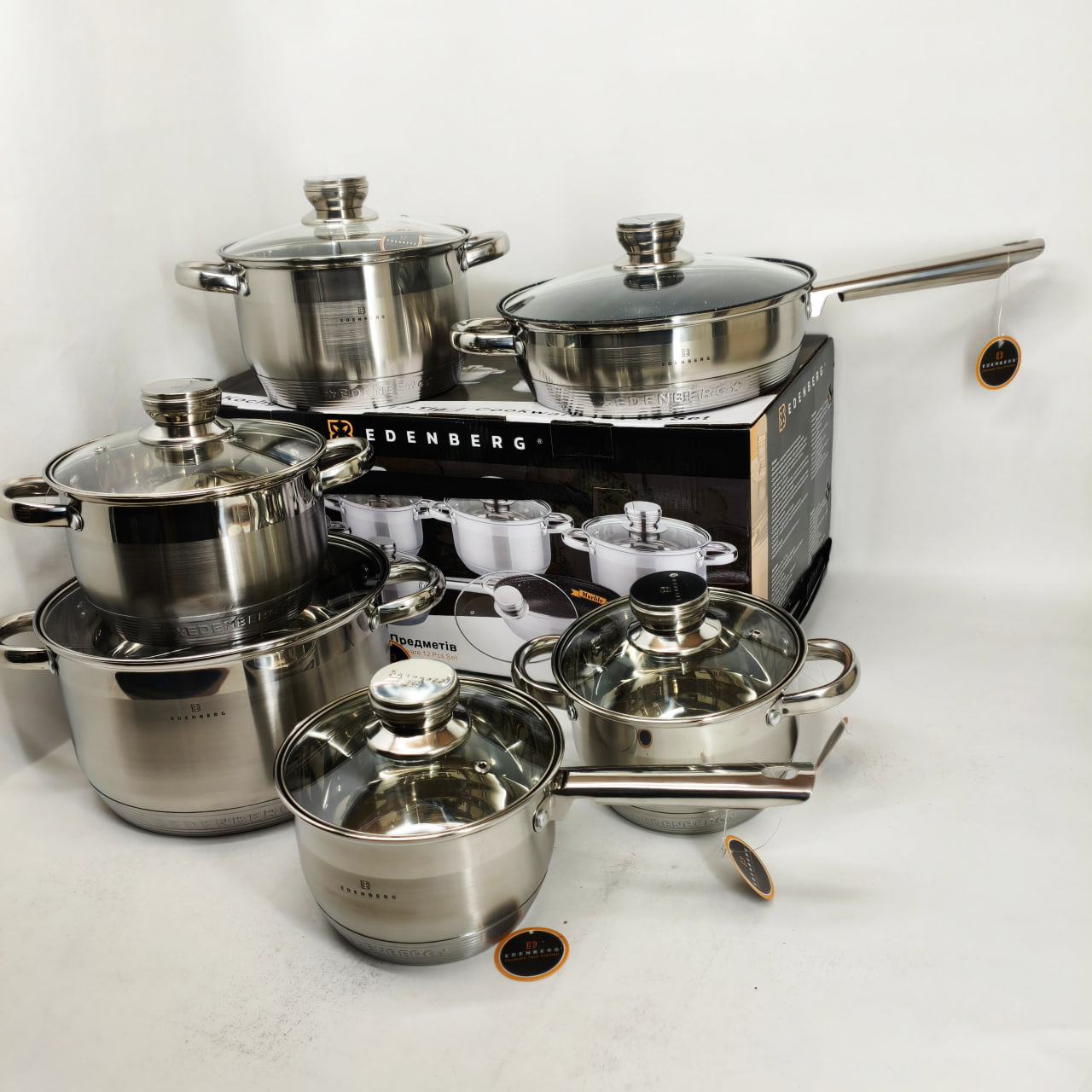 Набір посуду з кришками Edenberg EB-4080 із нержавіючої сталі 12 предметів 2.1л-6.5л