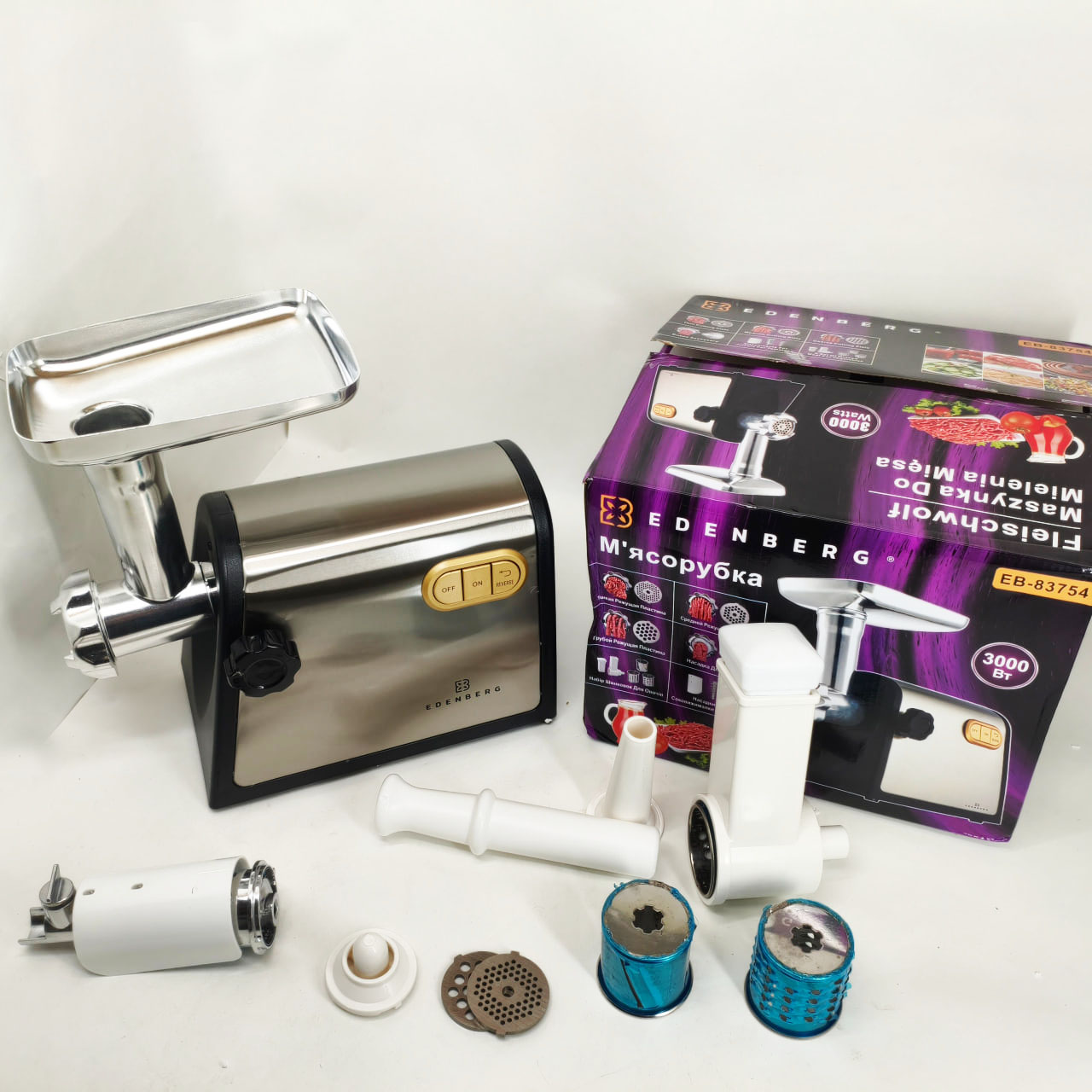 Електрична м'ясорубка для м'яса Edenberg EB-83754 електром'ясорубка з насадками