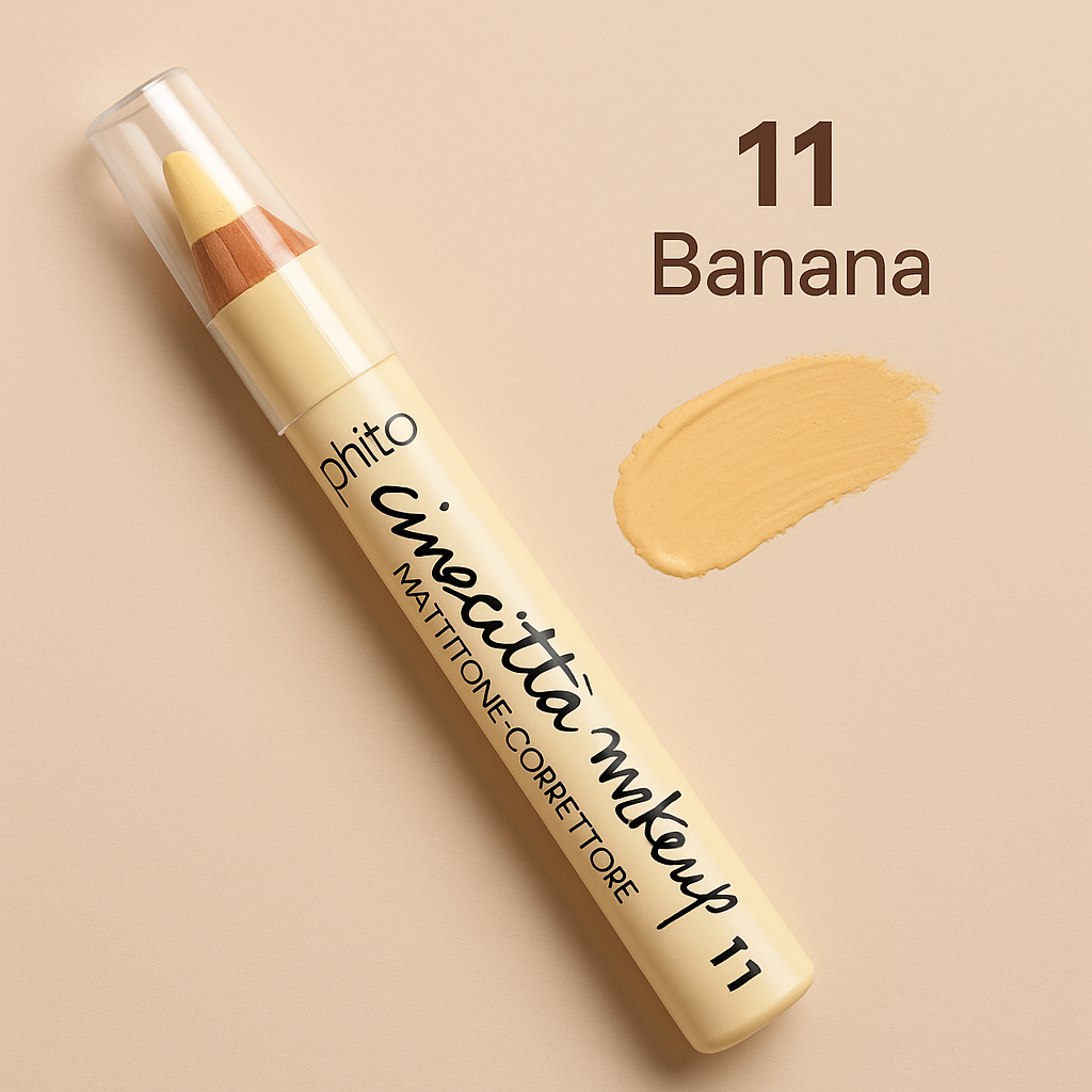 Коректор у вигляді великого олівця. CINECITTA Correctore matita.«М'яка який» коректор, менш щільний, ніж коректор в шайбі №516. Дуже економний у використанні, добре підходить для маскування синячків під очима. Випускається у формі дерев'яна трав'яного олівця довжиною 12см.