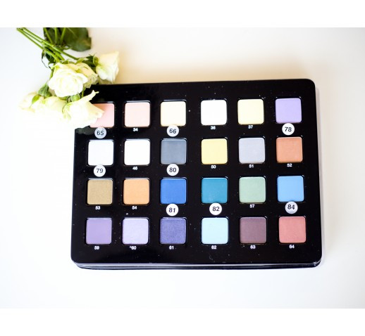 Ці тіні обов'язково порадують Вас простотою застосування, насиченістю та спектром кольорів. Для зручності візажистів представлена в палітрі з 24 відтінків. Зручна для обслуговування клієнтів на виїзді оскільки в палітру зібрані всі відтінки.