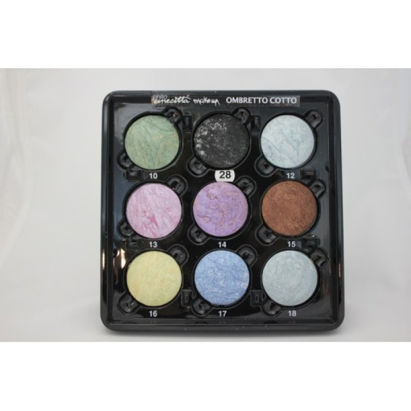 Палітра обпалених тіней Ombretto Cotto. 27 відтінків. Яскраві, перламутрові відтінки. Для отримання насиченого кольору наноситься вологою пензлем. Можна застосовувати в якості різнобарвною повідці (стрілки). Для зручності клієнтів представлені в одиничної упаковці.