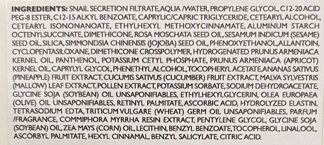 Активні компоненти:• Фільтрат слизу равлика (висока концентрація мукополісахаридів) – зволожує, відновлює та захищає шкіру, покращуючи її еластичність.• Гліколева кислота – забезпечує м’яке відлущування та усуває недоліки.• Аллантоїн, колаген, еластин, протеїни – живлять шкіру та надають їй сяяння.• Екстракти грейпфрута, лопуха, мальви – очищують та тонізують шкіру.Підходить для:• Усі типи шкіри, особливо для зрілої, сухої та пошкодженої.• Шкіри з акне, опіками, пігментацією чи рубцями.Вирішує проблеми:• Усуває недоліки шкіри, зокрема пігментні плями та дрібні рубці.• Відновлює тонус та еластичність.• Живить і зволожує шкіру.Рекомендації до використання:• Наносити вранці та ввечері на очищену шкіру обличчя та шиї.• Масажувати до повного вбирання.Резюме:Цей крем ідеально підходить для відновлення шкіри, зменшення її недоліків і покращення тонусу. Завдяки антиоксидантній дії та високій концентрації активних компонентів, шкіра стає гладкою, сяючою та зволоженою.Термін придатності:Дата виробництва та кінцевий термін використання зашифровані у batch-коді (відповідно до вимог виробника та чинного законодавства ЄС). Продукція закуповується нами напряму з фабрики офіційно, тому додаткові дати не вказуються.Ми контролюємо свіжість поставок: на момент продажу засоби мають не менше 24 місяців до завершення терміну зберігання.Термін використання після відкриття — 6 або 12 місяців (залежно від продукту, зазначено на упаковці у вигляді символу відкритої баночки).