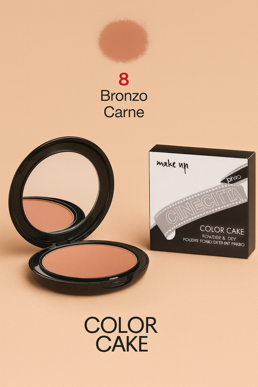 Тон пудра 2 в 1 CINECITTA Color Cake.Випускається в 12 відтінках. Покриваюча здатність від 30 до 60% .У сухому вигляді працює як щільна пудра і наноситься пензлем. При використанні вологим спонжем працює як тональна основа і не вимагає закріплення пудрою. Не рекомендується для дуже сухої і зрілої шкіри.