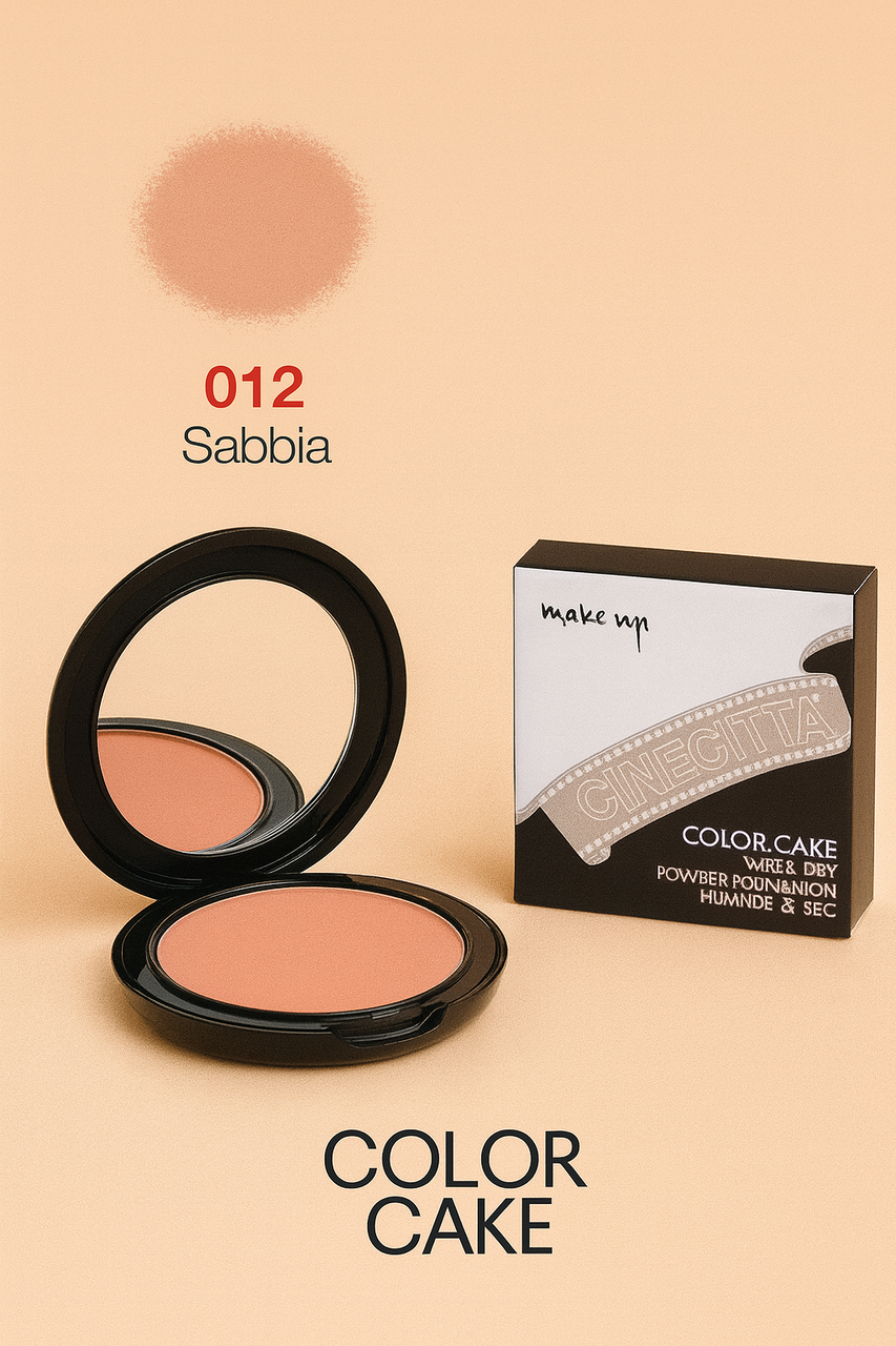 Тон пудра 2 в 1 CINECITTA Color Cake.Випускається в 12 відтінках. Покриваюча здатність від 30 до 60% .У сухому вигляді працює як щільна пудра і наноситься пензлем. При використанні вологим спонжем працює як тональна основа і не вимагає закріплення пудрою. Не рекомендується для дуже сухої і зрілої шкіри.