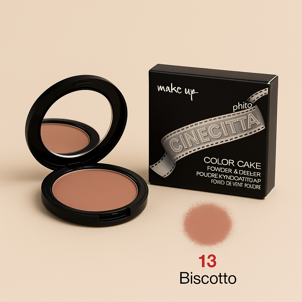 Тон пудра 2 в 1 CINECITTA Color Cake.Випускається в 12 відтінках. Покриваюча здатність від 30 до 60% .У сухому вигляді працює як щільна пудра і наноситься пензлем. При використанні вологим спонжем працює як тональна основа і не вимагає закріплення пудрою. Не рекомендується для дуже сухої і зрілої шкіри.