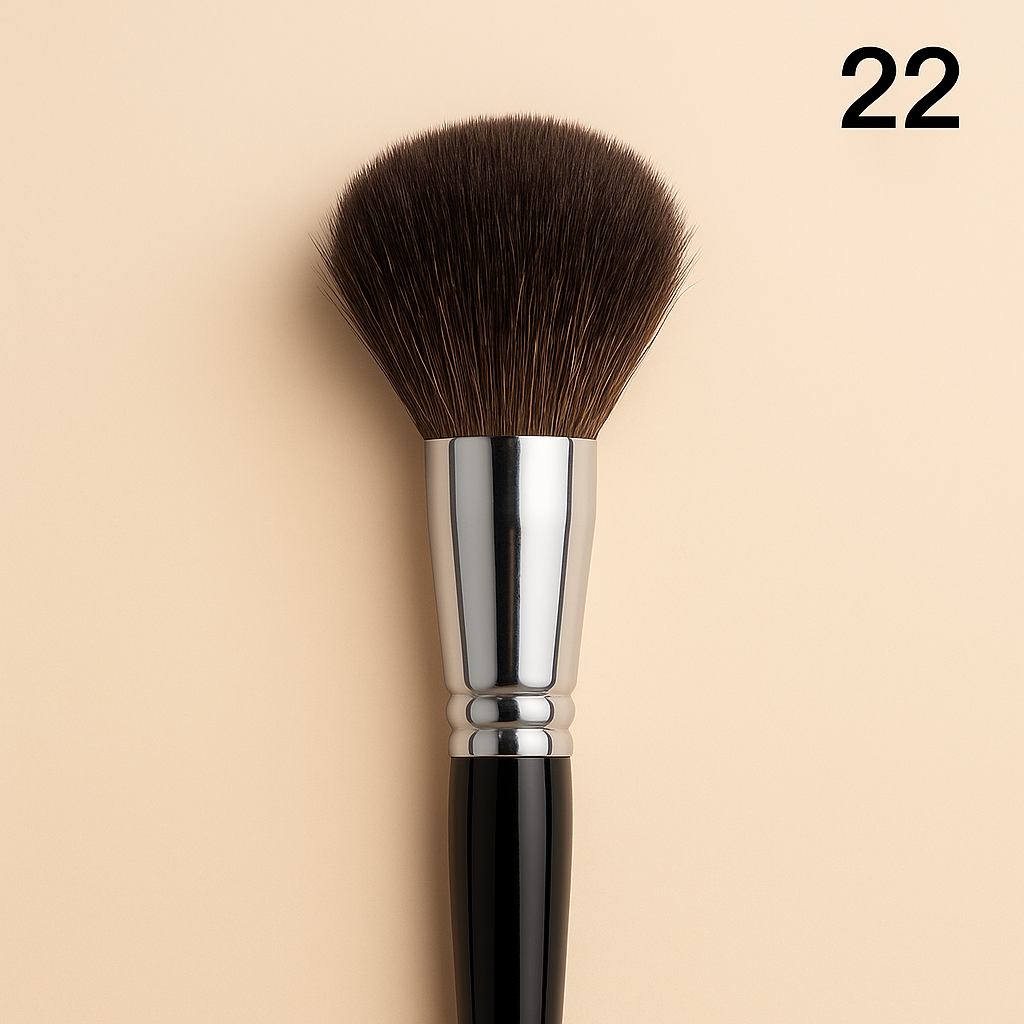 Пензлик для пудри та бронзера з ворсу поні (Powder Brush / Bronzer)Професійний пензлик із натурального ворсу поні створений для рівномірного нанесення пудри та бронзера. М’який і делікатний ворс забезпечує плавне розтушовування без плям і надлишків, створюючи природний, сяючий фініш.✨ Основні переваги:Натуральний ворс поні — надзвичайно м’який і приємний до шкіри, гарантує комфорт у кожному русі.Професійна округла форма — дозволяє легко опрацьовувати великі ділянки обличчя.Ідеальне нанесення — рівномірно розподіляє пудру або бронзер, створюючи бездоганний тон і природний ефект засмаги.Універсальність — підходить для розсипчастих і пресованих текстур.Довговічність — ворс зберігає форму, еластичність і м’якість навіть після тривалого використання.☀️ Інструмент преміум-класу, який допоможе створити бездоганний тон і легкий, здоровий відтінок шкіри — як після відпочинку на сонці.