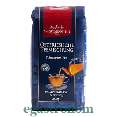 Терпкий чорний чай з характером, має насичений смак і колір. Чай Westminster Ostfriesische Teemischung - це справжня знахідка для любителів натурального чаю, який відмінно тонізує і додає бадьорості всьому тілу. ТОП запити Ціна борошно Брі сир ціна Засіб для прибирання Соус соєвий Цукерки Капсули для посудомийної машини Асорті сирна нарізка