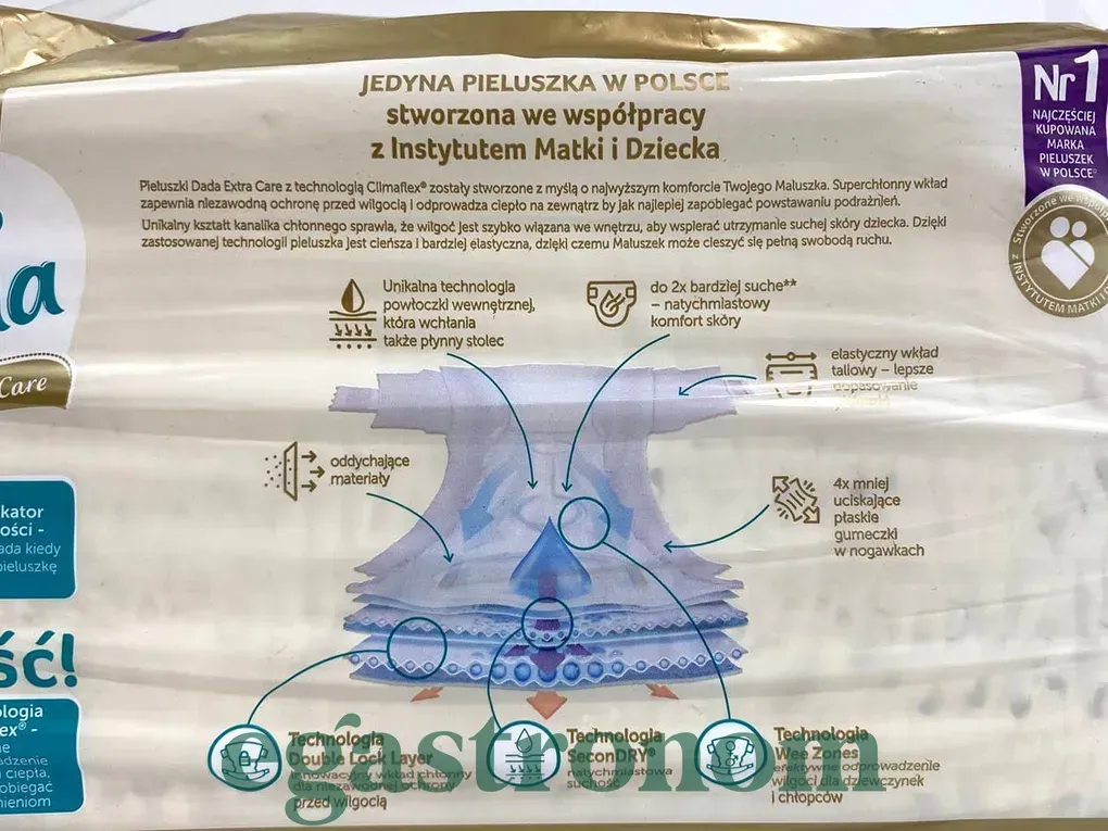 Підгузники Dada Extra care з революційною технологією для максимального комфорту вашого малюка. Інноваційний суперпоглинаючий картридж забезпечує надійний захист від вологи і ефективно відводить тепло назовні, щоб мінімізувати ризик роздратування. Унікальна форма абсорбуючого канальця дозволяє волозі швидко зв'язуватися всередині підгузника, допомагаючи зберегти шкіру дитини сухою. Вони не порушують мікробний баланс шкіри і підтримують природну мікрофлору шкіри немовлят. ТОП запити Ціна сиру камамбер Товари побутової хімії Вітамін купити Мішки для сміття ціна Купити таблетки до посудомийки Пральне мило Крупи ціна
