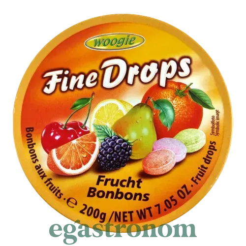 Мікс льодяників Fine Drops Frucht Bonbons зі смаком фруктів: вишня, ожина, груша, лимон, апельсин. Для виробництва ягідних льодяників Fine Drops використовуються виключно натуральні інгредієнти.