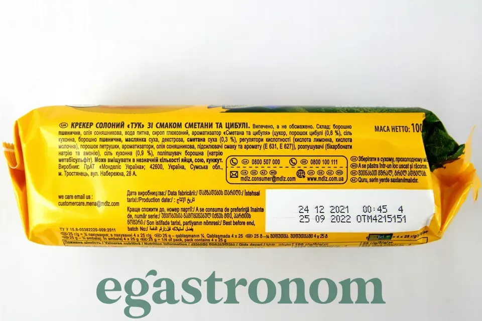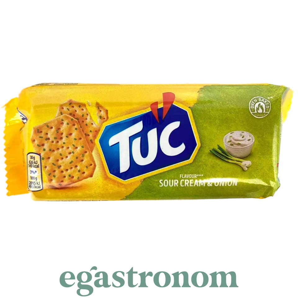 Крекер TUC Sour Cream and Onion зі смаком сметани та цибулі. Приготовлений за традиційною рецептурою із натуральних інгредієнтів.