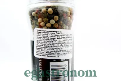 Чотири види перцю в скляній тарі з млинком – обов'язкова спеція на кожній кухні. Млинок у складі якого містяться: чорний, білий, зелений та рожевий перці. Кожен може оцінити переваги щойно меленої приправи – неймовірно насичений аромат та смак, який надасть яскрава суміш перців від Vitana. ТОП запити Ціна муки Пральний порошок купити Купити цукерки в україні Ціни на чай Плямовивідник для одягу Ціни на масло Сухий сніданок
