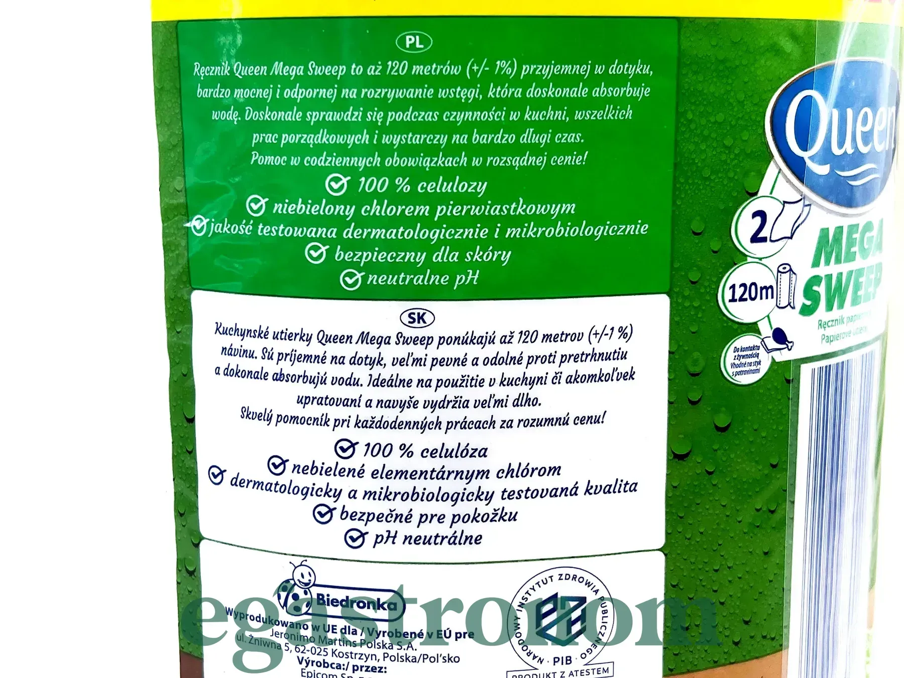 Надзвичайно міцні та м’які двошарові паперові рушники довжиною 120 метрів. Виготовлені зі 100% целюлози, не відбілені хлором, мають нейтральний pH та безпечні для шкіри. Відзначаються високою поглинальною здатністю — швидко вбирають вологу, не рвуться навіть у мокрому стані. Ідеально підходять для кухні, прибирання та повсякденного використання.