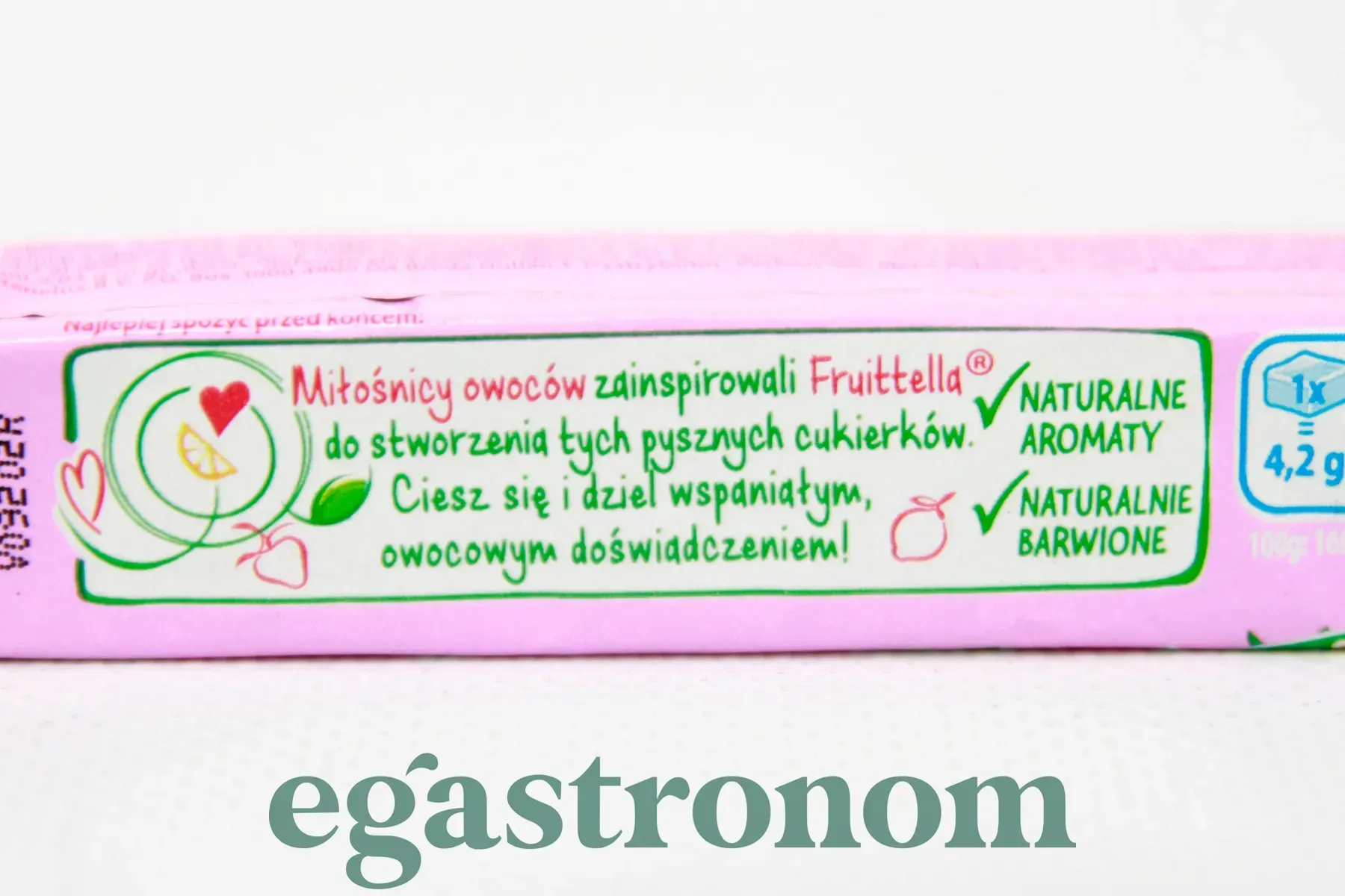 Цукерки жувальні Фрутелла полуниця - це смачні та ароматні жувальні цукерки зі смаком свіжих полуниць. Це солодка насолода, яка додасть вам задоволення і зробить ваш день ще смачнішим. Вони можуть бути чудовим джерелом енергії та невеликим перекусом під час перерви чи поїздки.