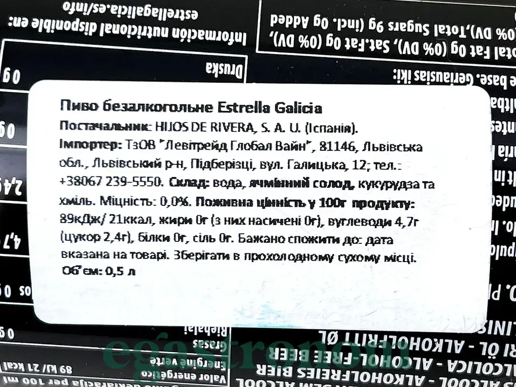 Пиво безалкогольне світле Естрелла Галіція Estrella Galicia 0% 500ml ж/б 24шт/ящ