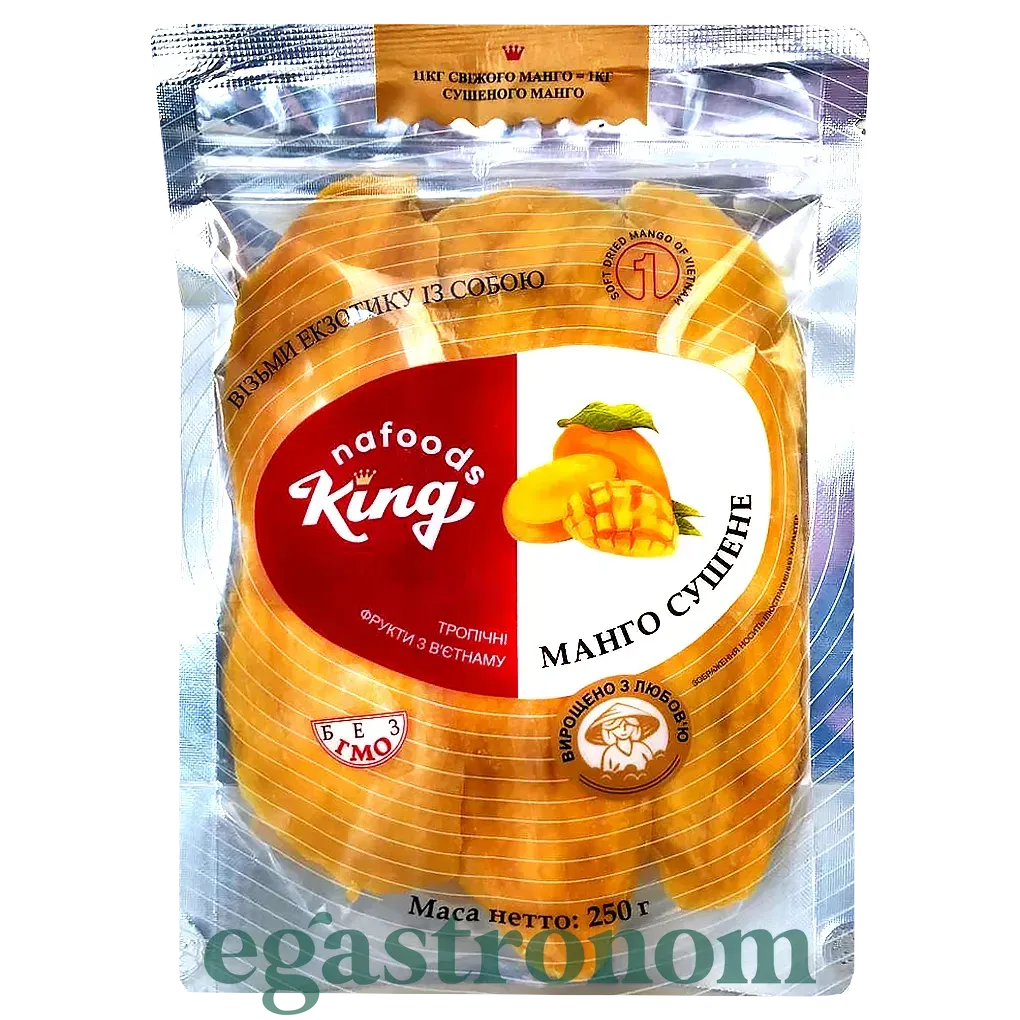 Сушене манго - це популярний та смачний фруктовий снек, що виготовляється зі свіжих плодів манго, які обережно сушаться для збереження їхнього натурального смаку та аромату. Процес сушіння концентрує солодкість манго, роблячи цей снек особливо привабливим для любителів фруктів. Сушене манго - це не тільки смачний перекус, але й корисний. Воно містить різноманітні вітаміни та мінерали, зокрема вітамін С та дієтичну клітковину. Воно також є джерелом антиоксидантів, які можуть сприяти здоров'ю шкіри та загальному благополуччю. Цей снек є ідеальним вибором для активних людей, оскільки він зручний у вживанні, легко транспортується і не потребує холодильного зберігання. Сушене манго можна використовувати як самостійний перекус, додавати до сніданків, салатів або випічки, а також використовувати у приготуванні десертів.
