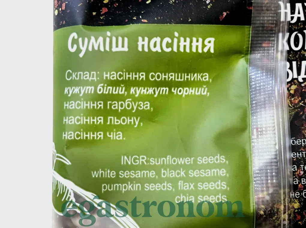 Суміш різноманітного насіння, що ідеально підходить для додавання до салатів, випічки, каш, йогуртів та смузі. Гарбузове насіння, соняшникове насіння, лляне насіння, кунжут та інші корисні види. Ця суміш багата на клітковину, рослинні білки, вітаміни та корисні жири, які підтримують здоров’я серця, травлення та загальне самопочуття. ТОП запити Засіб для чищення кухні Маршмеллоу купити Сирні нарізки Купити гель для душа Консервація купити Томатна паста купити Пральний порошок ціна