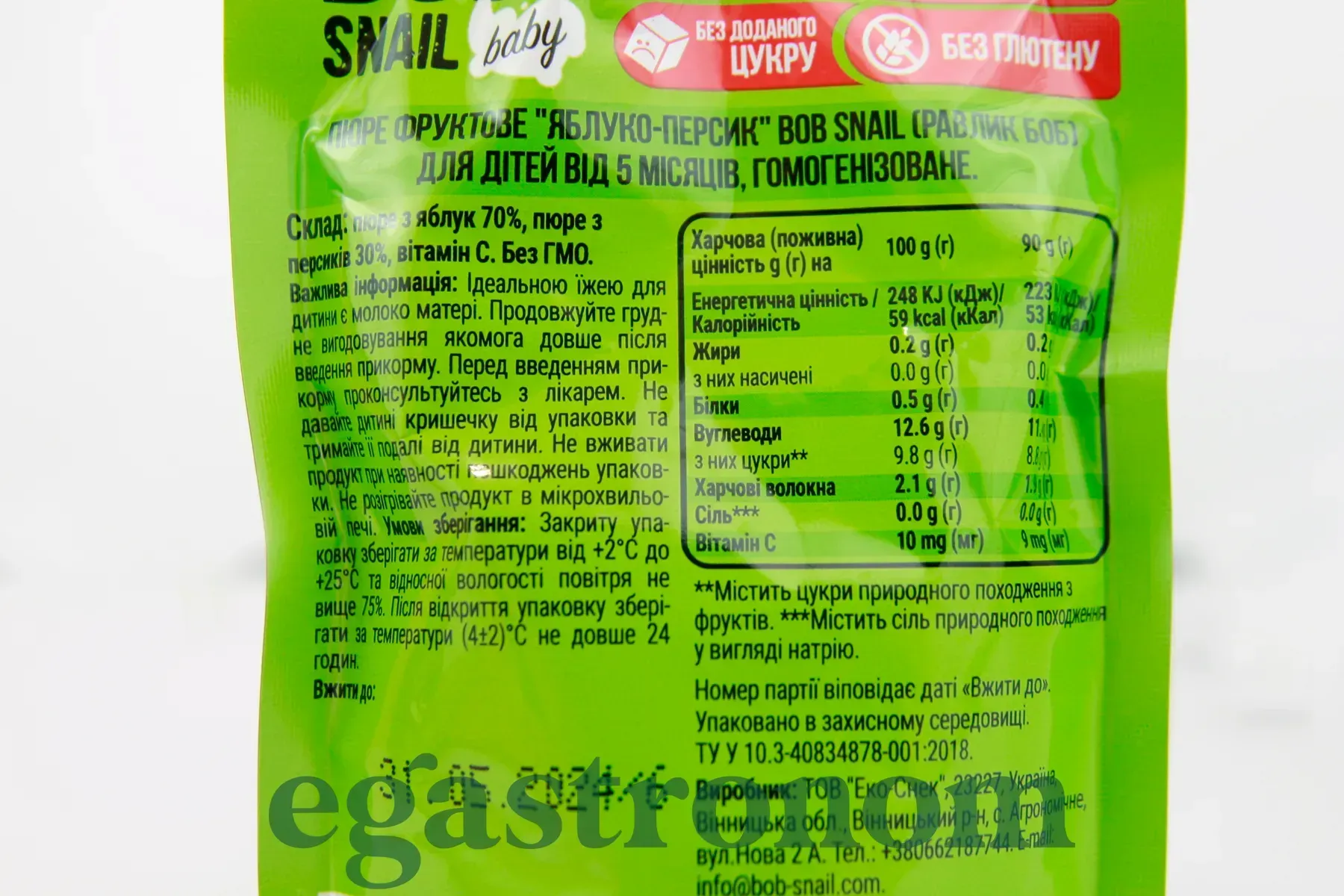Пюре фруктове (дитяче харчування) яблуко-персик Равлик Боб Bob snail 90g 10шт/ящ