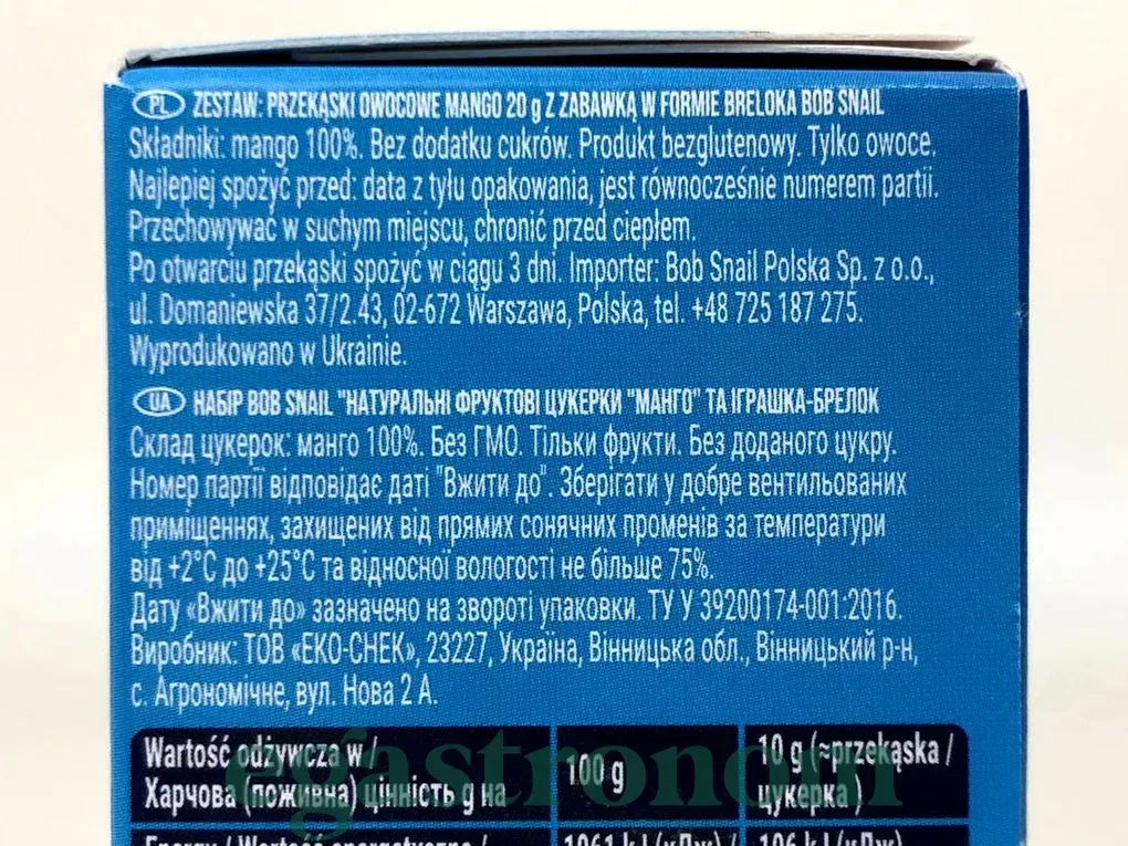 Цукерки натуральні манго з іграшкою міньйони Равлик Боб Bob snail 20g 16шт/ящ