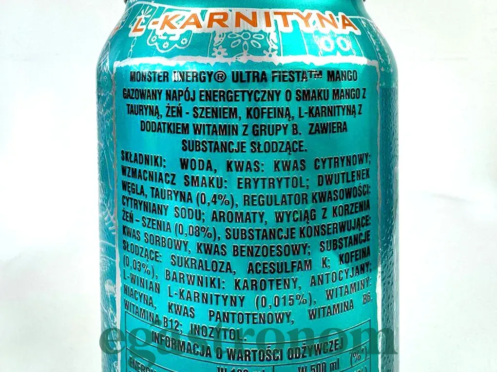 Енергійний напій Monster має насичений та м'який смак. Ідеальне поєднання правильних інгредієнтів у правильній пропорції, яку вміє робити саме Monster. Виготовляється на основі води, фруктових соків, сиропу глюкози, вуглекислого газу та інших компонентів. До складу напою входять кофеїн, деякі вітаміни групи В та карнітин. Безалкогольний газований напій без цукру. Кількість на палеті: 1440 шт.