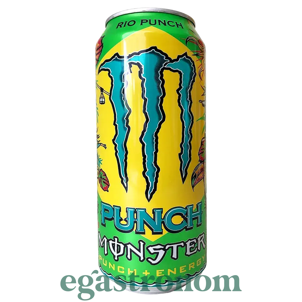 Monster Rio Punch — це енергетичний напій, що поєднує суміш екзотичних фруктових смаків із ноткою спецій, натхненний карнавалом у Ріо-де-Жанейро. Він містить фірмовий енергетичний комплекс Monster, який допомагає підбадьоритися та зарядитися енергією. Кількість на палеті: 1440 шт.