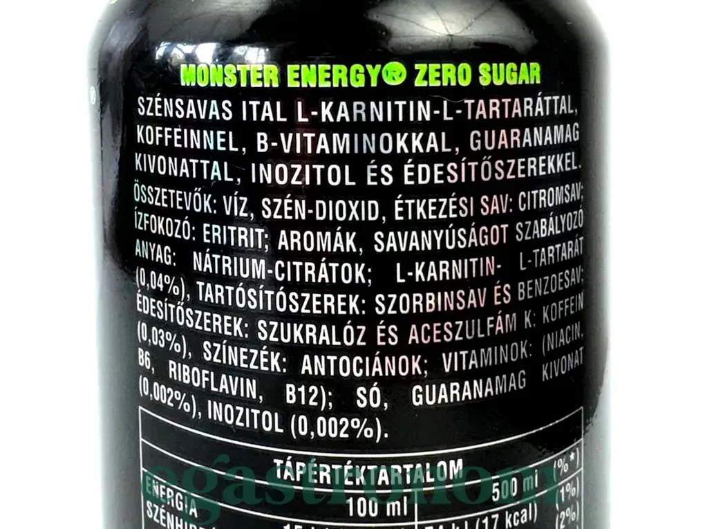 Енергійний напій Monster має насичений та м'який смак. Ідеальне поєднання правильних інгредієнтів у правильній пропорції, яку вміє робити саме Monster. Виготовляється на основі води, фруктових соків, сиропу глюкози, вуглекислого газу та інших компонентів. До складу напою входять кофеїн, деякі вітаміни групи В та карнітин. Безалкогольний газований напій без цукру. Кількість на палеті: 1440 шт. ТОП запити Купити шампунь Купити солодке Сир дорблю Товари особистої гігієни Засоби для гоління Оливки і маслини Освіжувач повітря