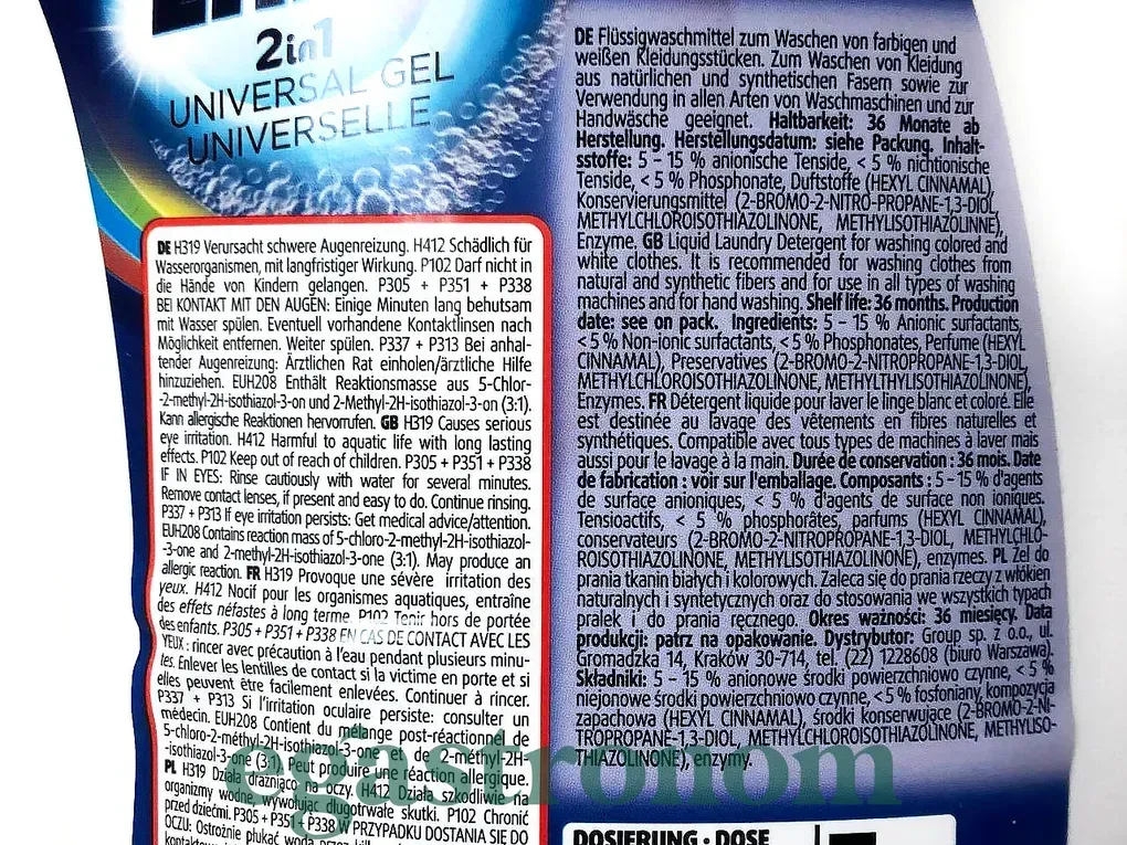 Високоефективний засіб для прання, який поєднує функції прального гелю та кондиціонера. Він підходить для прання як білих, так і кольорових тканин у пральних машинах та для ручного прання. Завдяки формулі "2в1" не тільки очищає, але й пом'якшує тканини, залишаючи приємний свіжий аромат. ТОП запити Вітаміни замовити Мішки мусорні Ціни на чай Миючі засоби для ванни Купити крупу Ціна сухофруктів Догляд за волоссям засоби