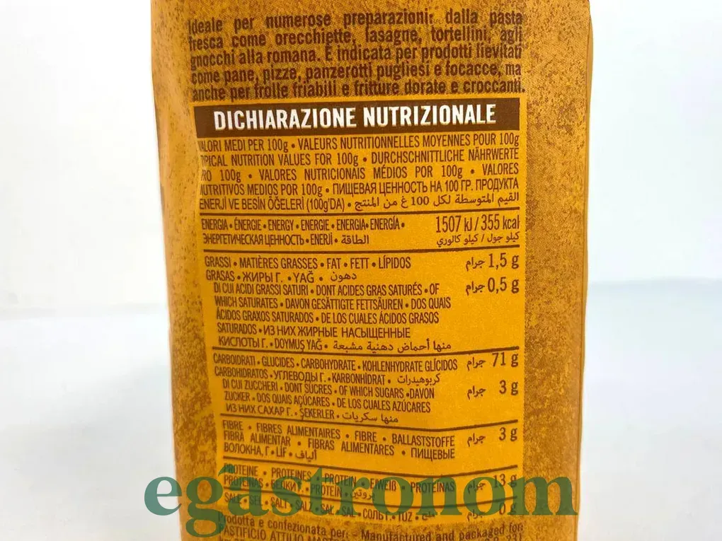 Традиційне італійське борошно з твердих сортів пшениці - Семола.Володіє крупчатою текстурою і легким жовтим кольором.Ідеально підходить для приготування різноманітної домашньої та професійної випічки: від булочок і фокаччи, до тіста для пасти і макаронних виробів.В своєму складі має значну частину оболонки зерна, завдяки чому містить більше клейковини, тому добре вбирає воду і тримає форму. Кількість на палеті - 990шт ТОП запити Купити джем Купити ковбасу Засоби від сонця Купити чай в україні Соуси з майонезу Сир камамбер ціна Засоби гігієни